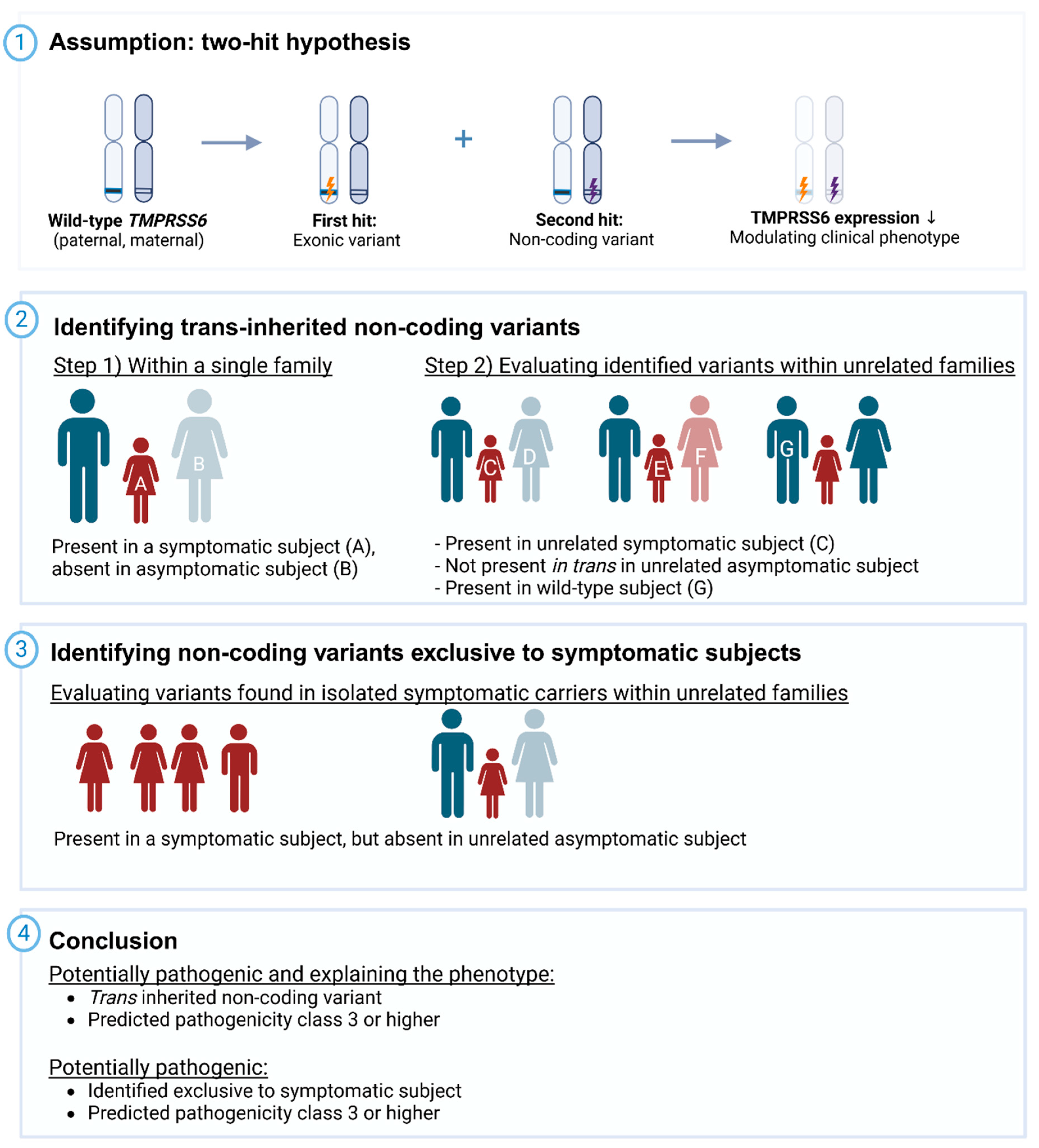- Relatives of symptomatic monoallelic subjects who lack an exonic TMPRSS6 variant and do not express the IRIDA phenotype.