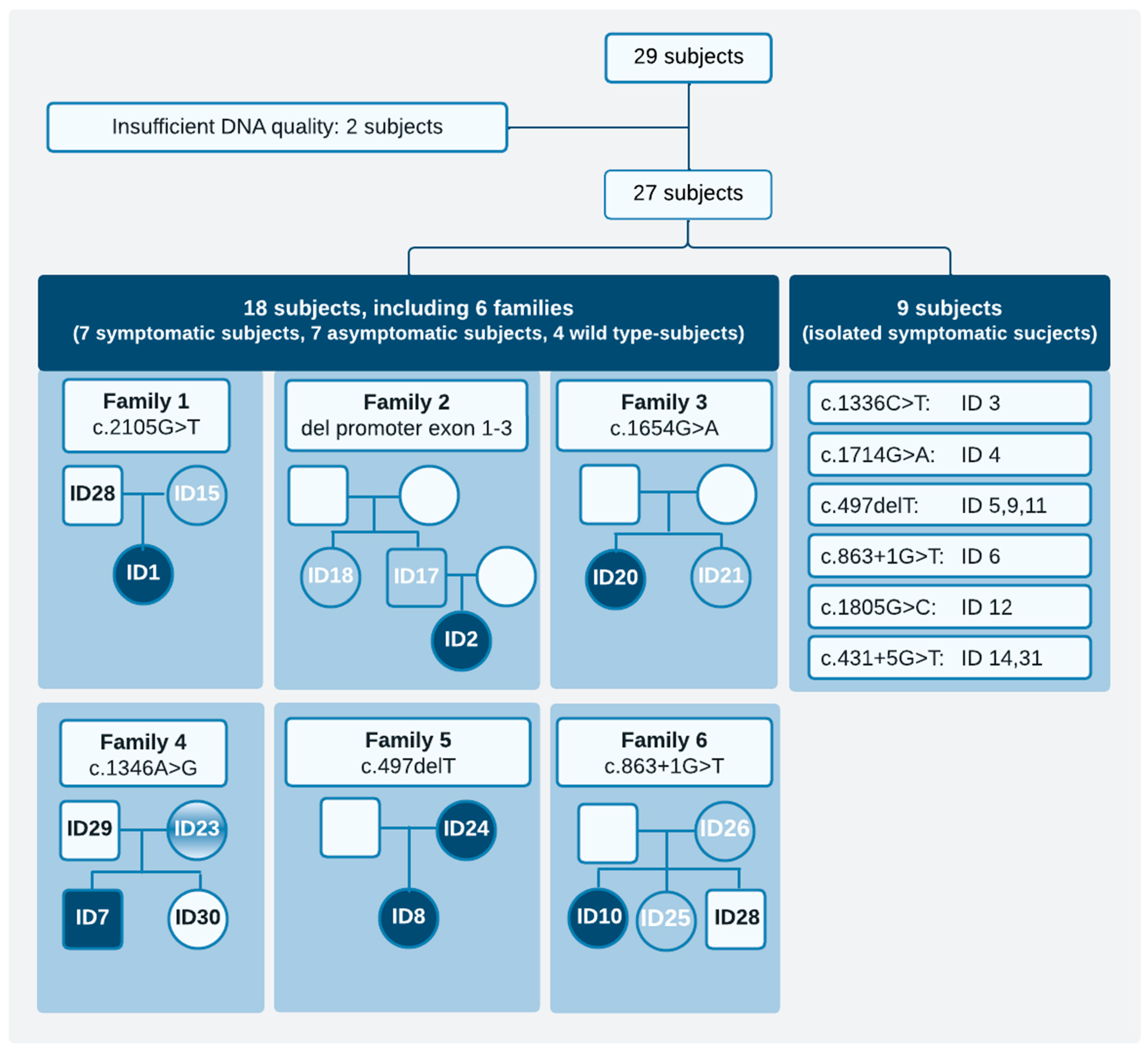 | WT | 29 (family c.1346G>A) | |||