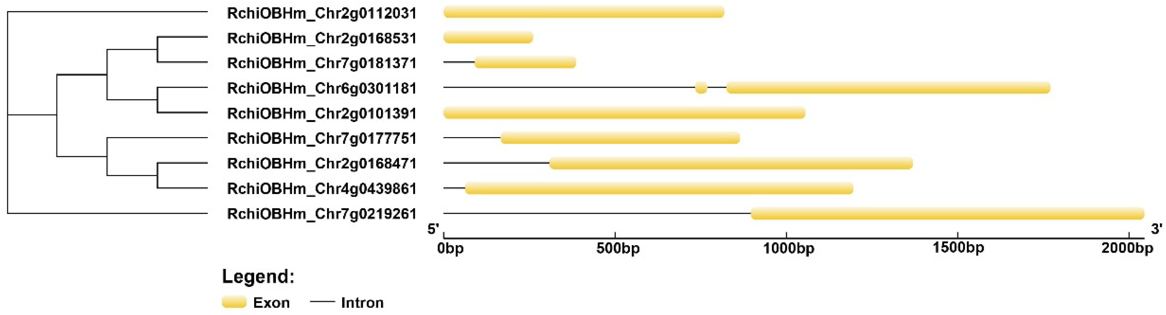 3.4. Gene Structure Analysis Rose ZF-HD Genes