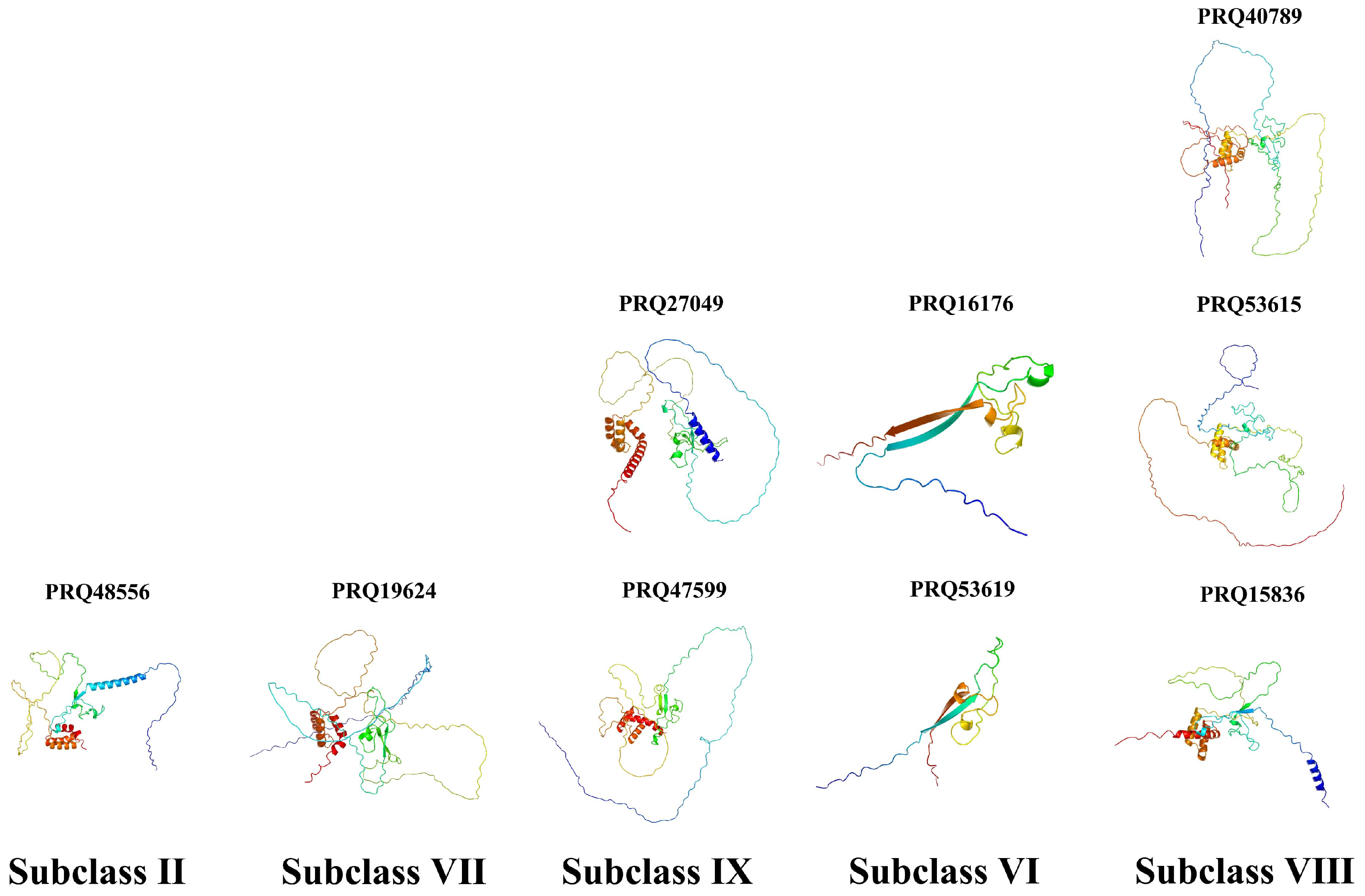 3.6. Three-Dimensional Structure Prediction of Rose RcZF-HD Genes
