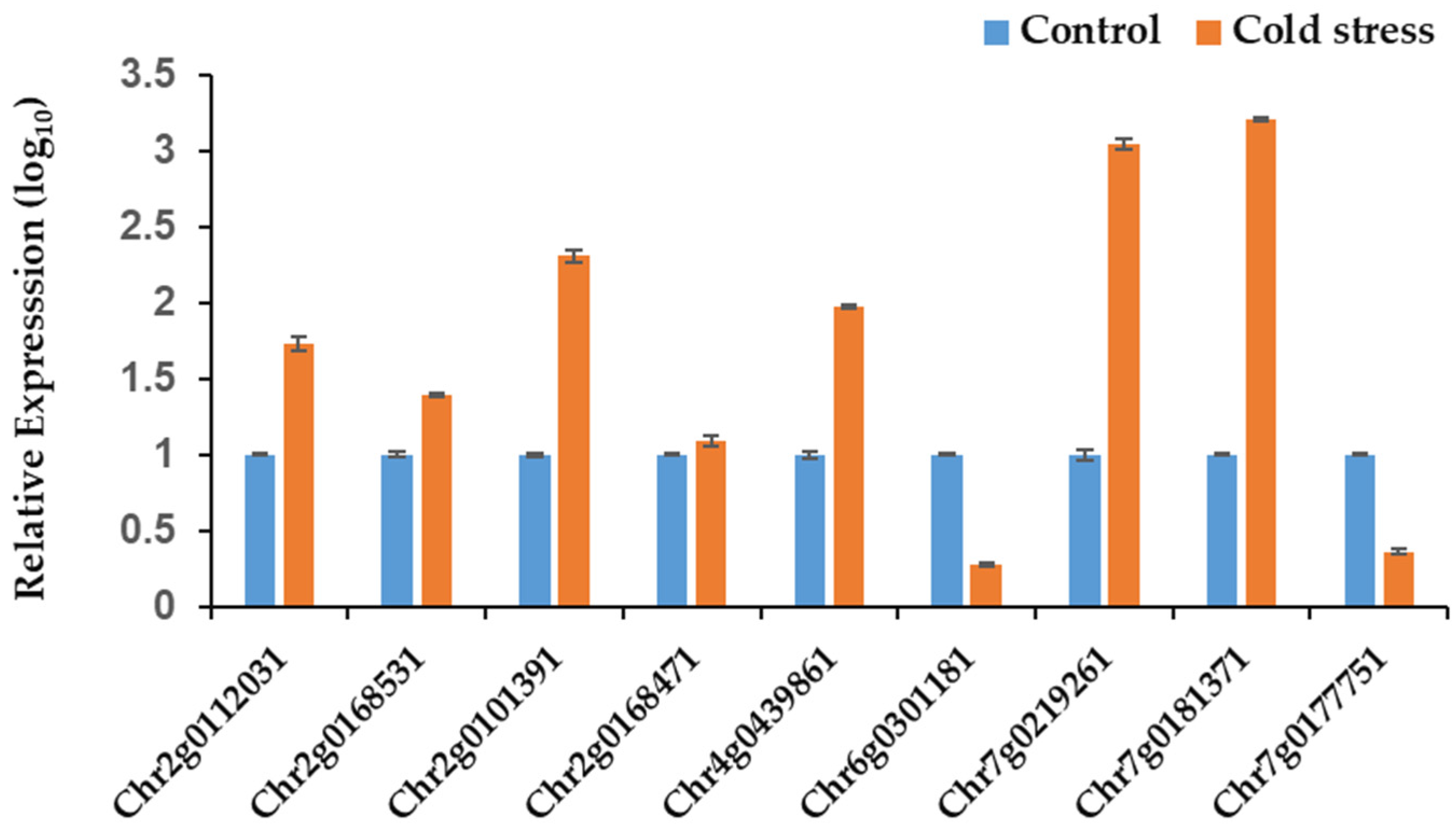 2.7. Cold Response of ZF-HD Gene Family in Rosa chinensis