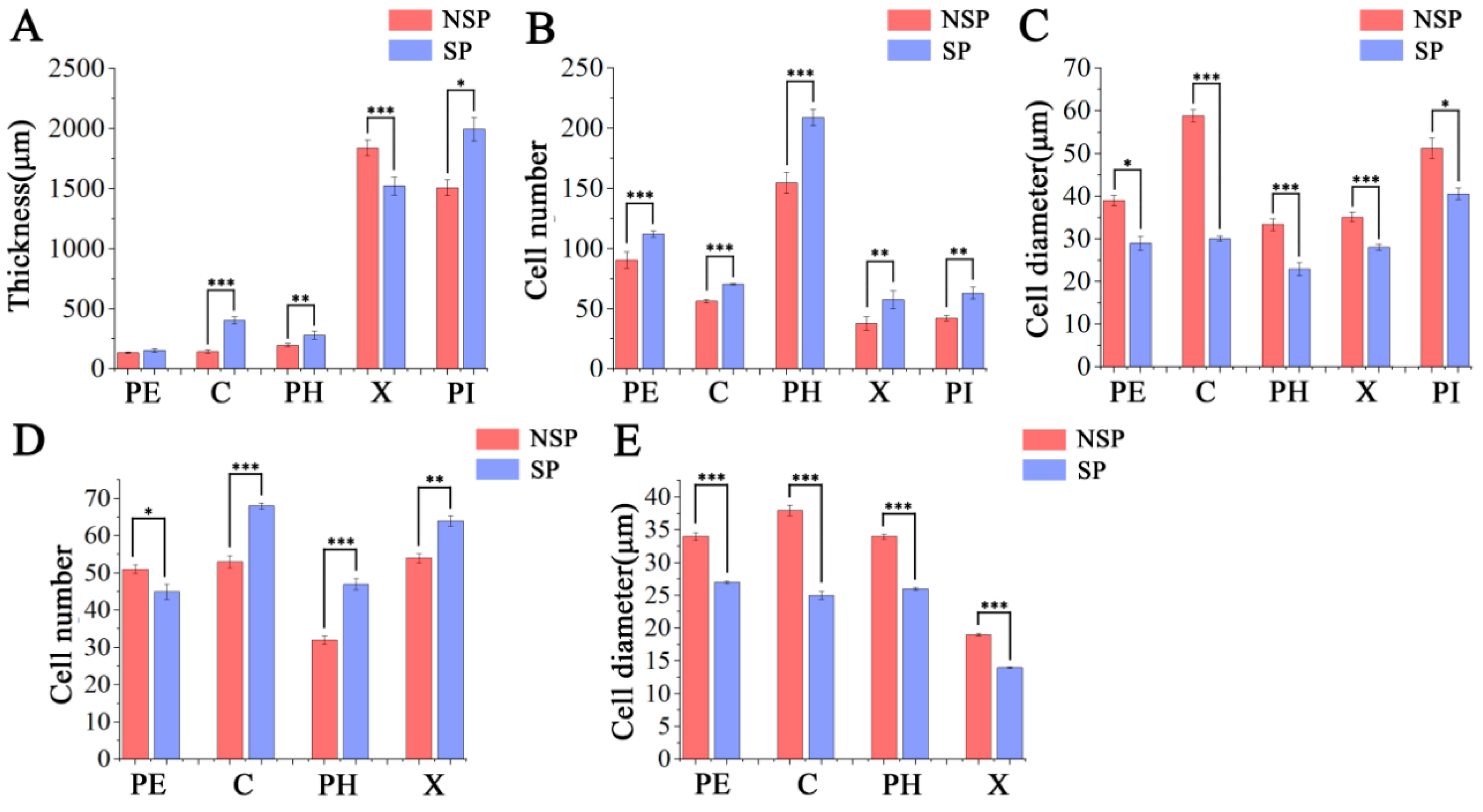 3.1. Morphometric Measurements of NSP and SP