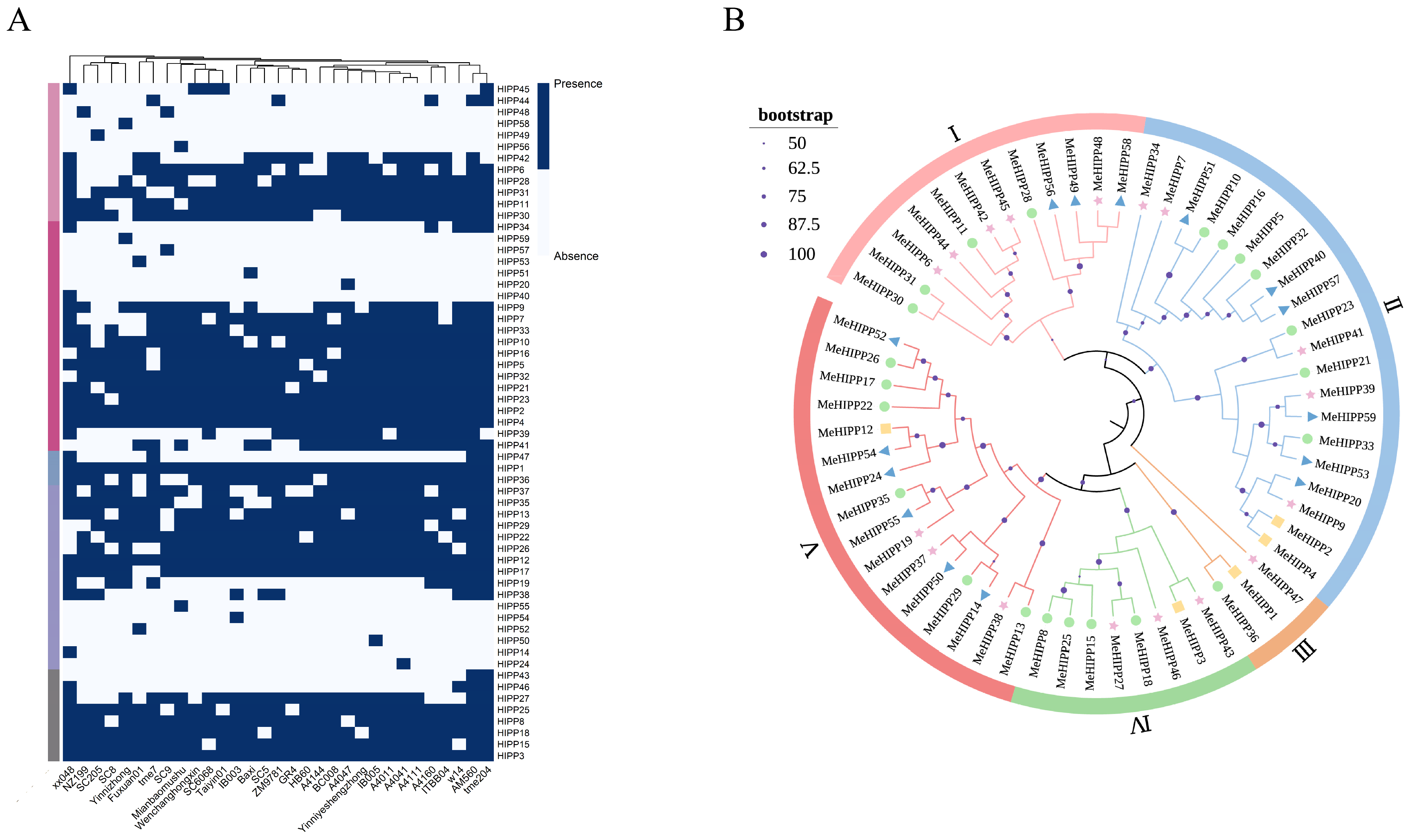 3.2. Presence/Absence Variation and Phylogenetic Analysis of HIPP Gene Family