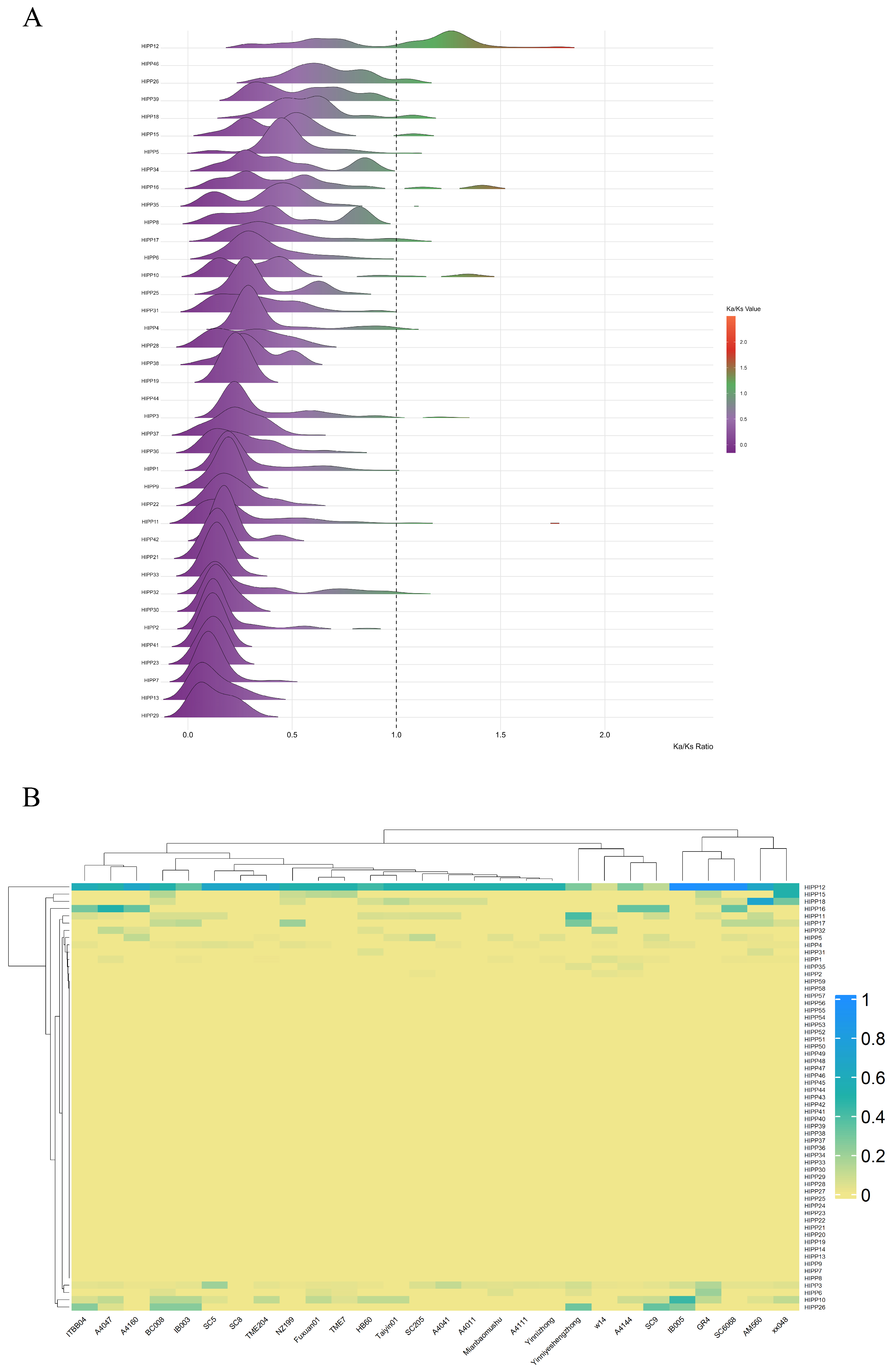 | Ka/Ks | ratio of the nonsynonymous substitution rate to the synonymous substitution rate |