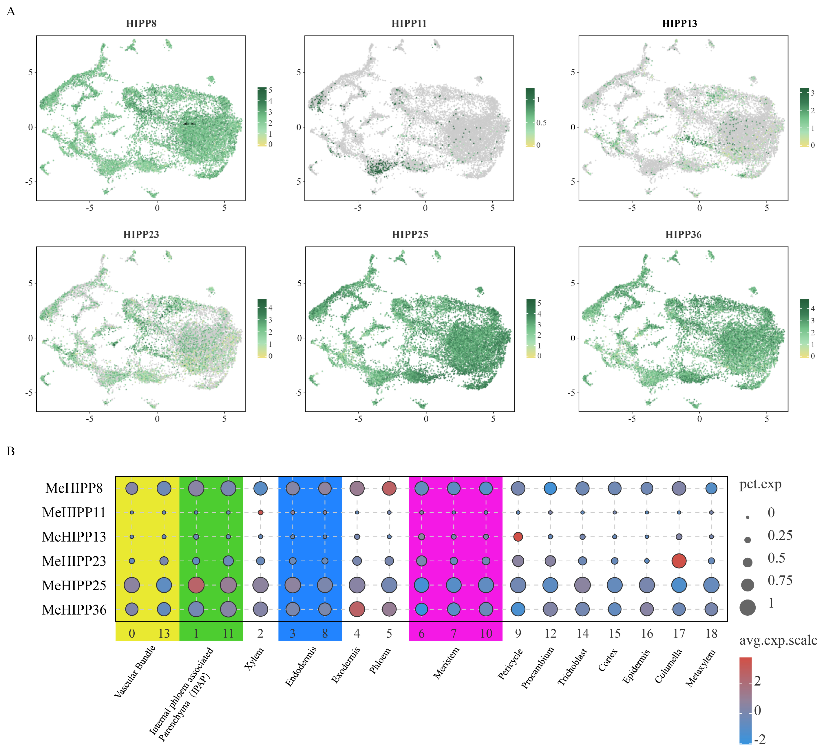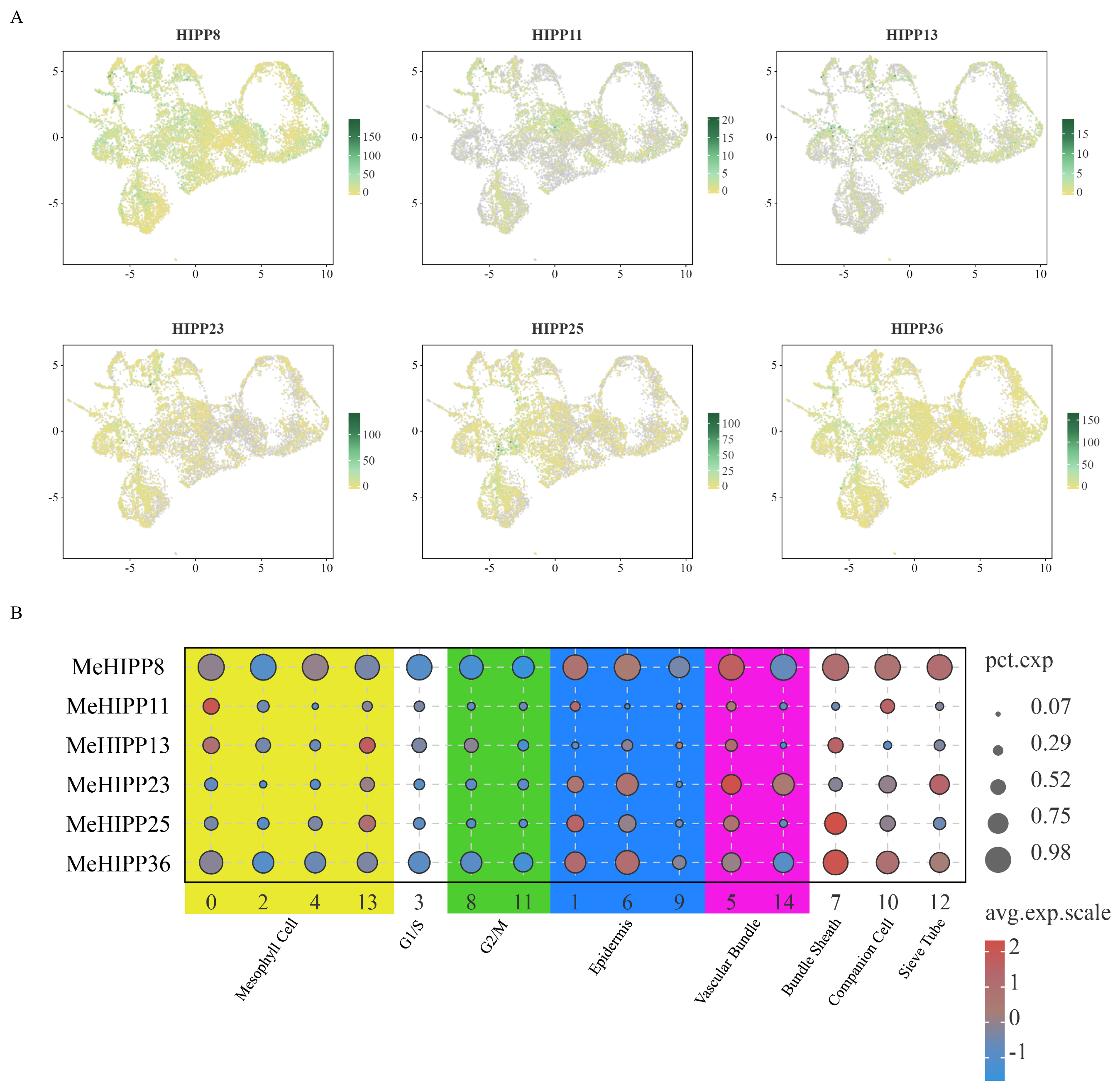 3.8. Expression Patterns of MeHIPP Genes in Single-Cell Transcriptomes