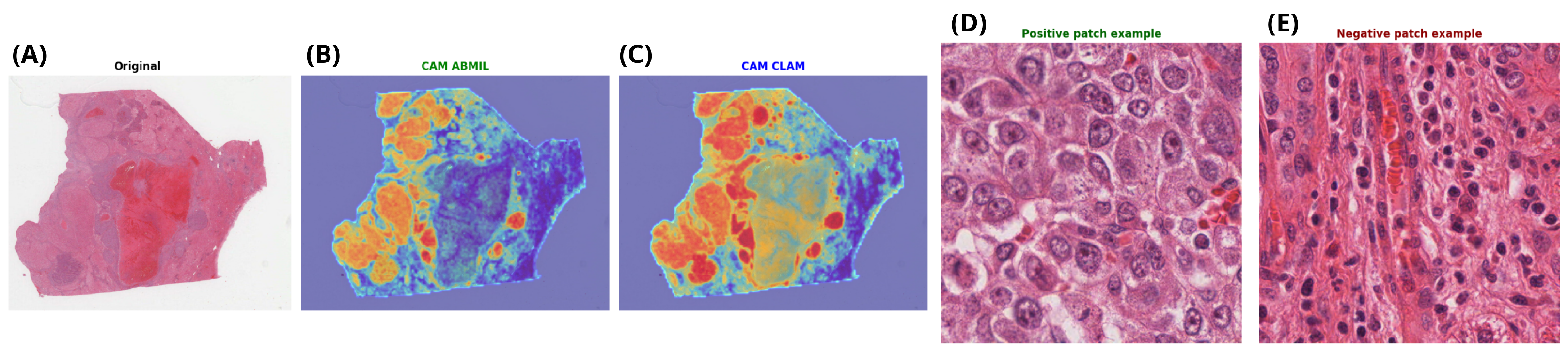 - CLAM (Clustering-Constrained Attention MIL) [28]: Introduces instance-level clustering to explicitly separate positive and negative evidence within a bag, guiding the attention mechanism toward discriminative regions.