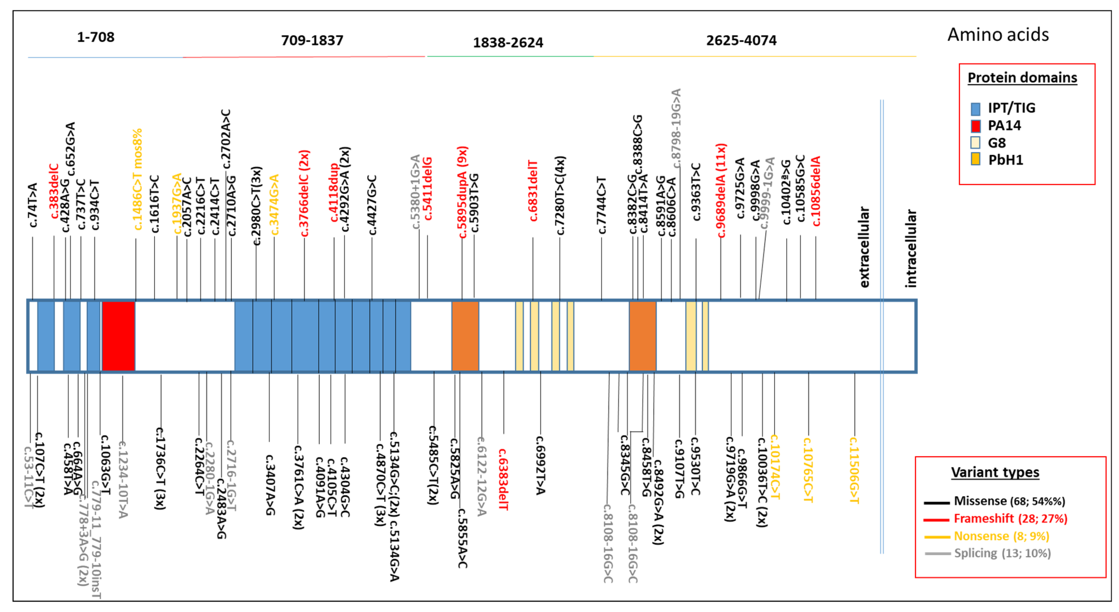 | Association of genotype with hepatobiliary severity | Strong trend: hepatobiliary disease common across all genotype classes; liver-predominant forms noted | Hepatic disease increases with survival, genotype correlation weak | Hepatic severity largely independent of genotype | Significant hepatic involvement in survivors | Missense in AA 1838-2624 presented better hepatic outcome, aa. 2635-4074 the worst one |