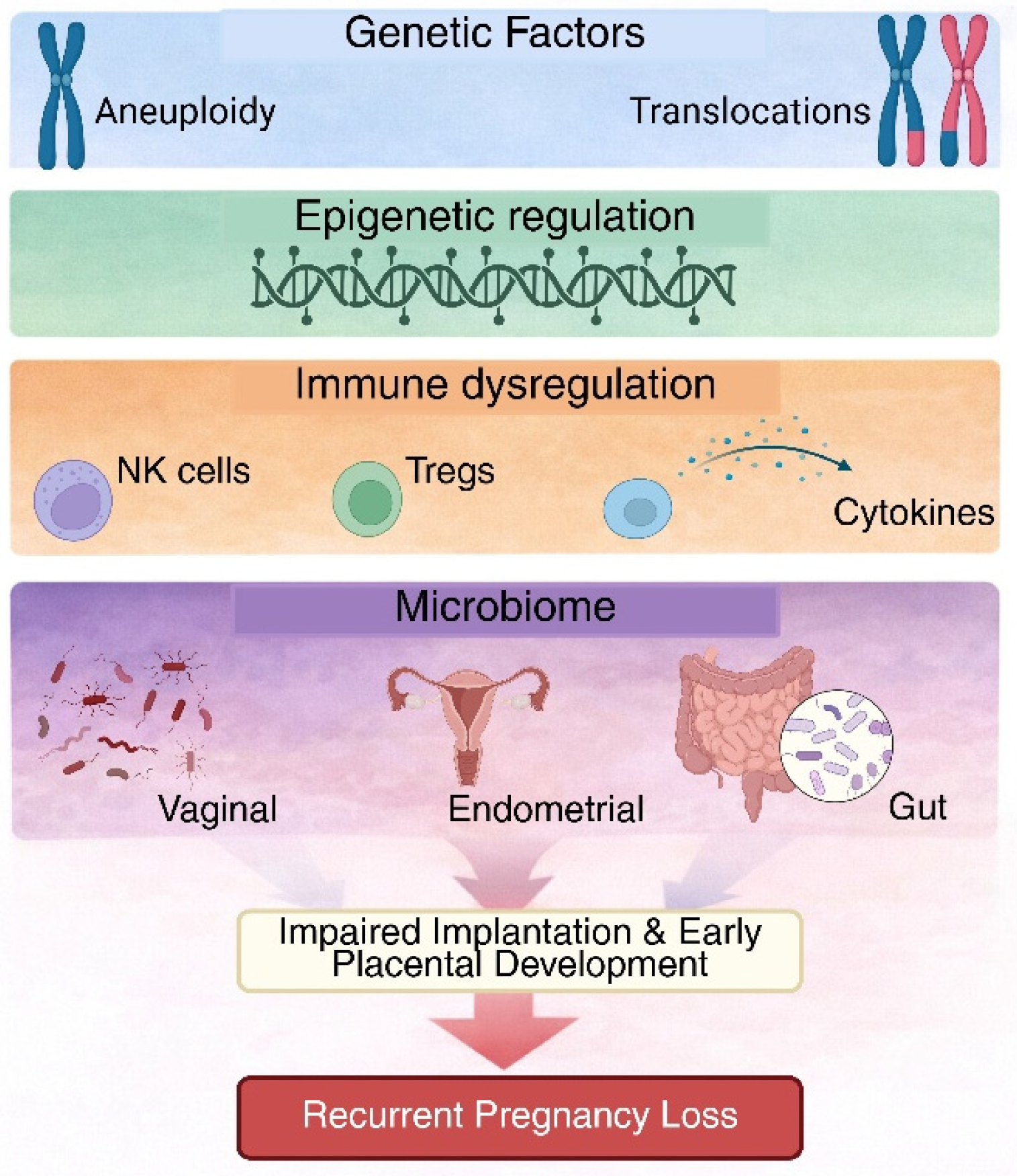 Investigating immune–microbiome crosstalk in RPL is therefore justified by modern models of RPL, which provide an integrated framework in which genetic susceptibility interacts with immunological and microenvironmental variables to determine pregnancy outcome [