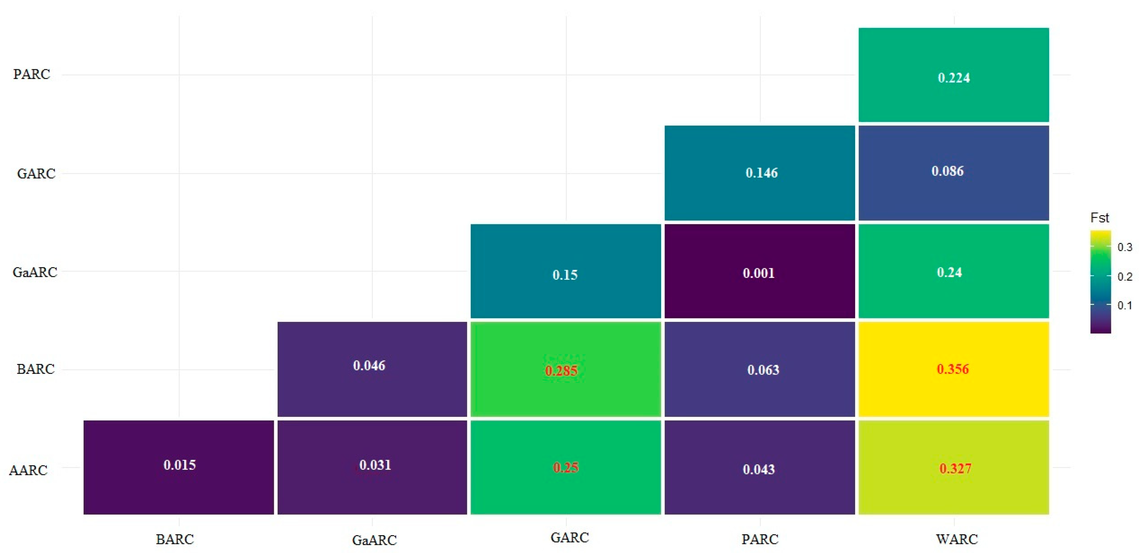 3.7. Molecular Variance (AMOVA)