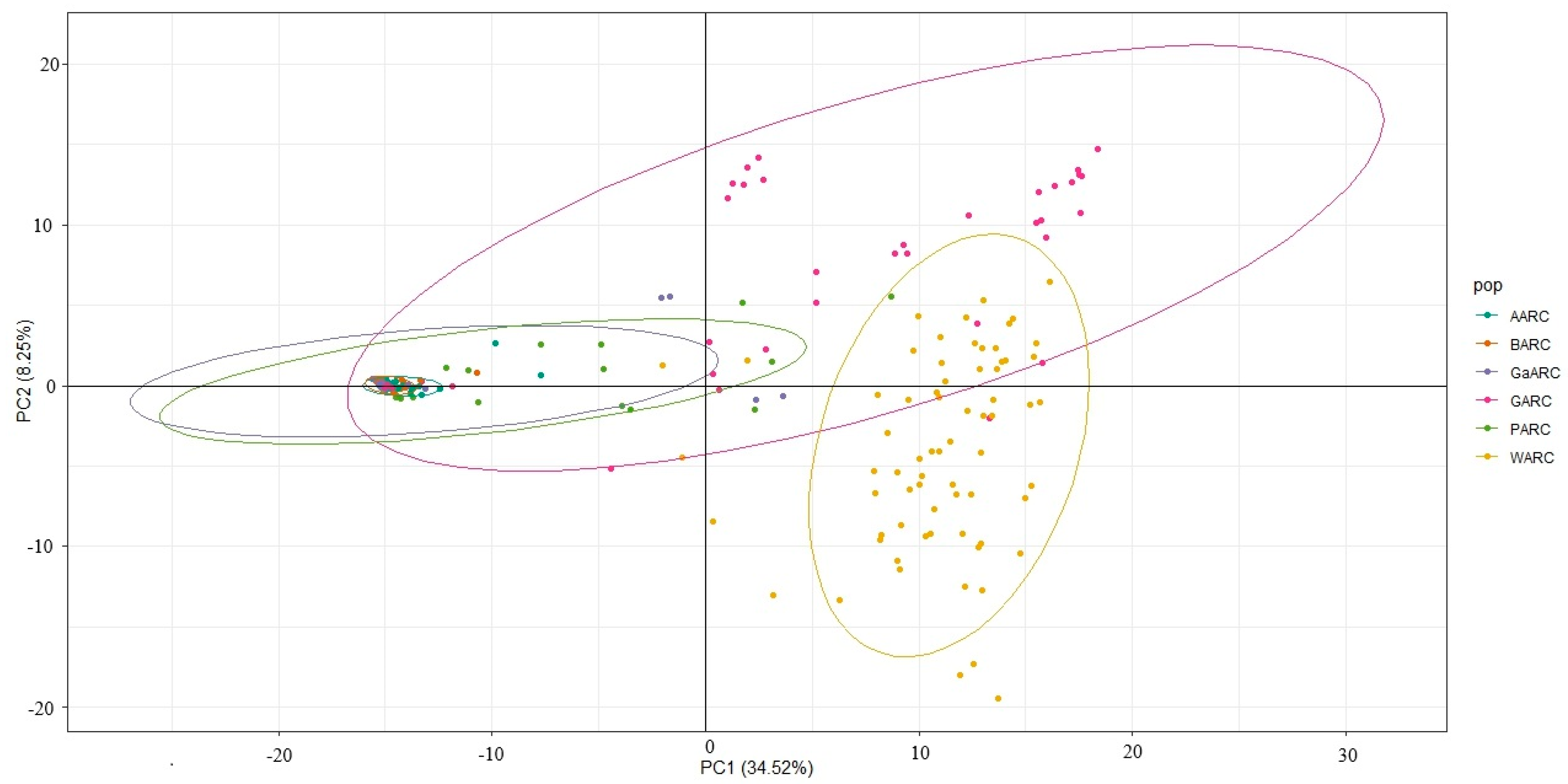 3.5. Discriminant Analysis of Principal Components (DAPC)