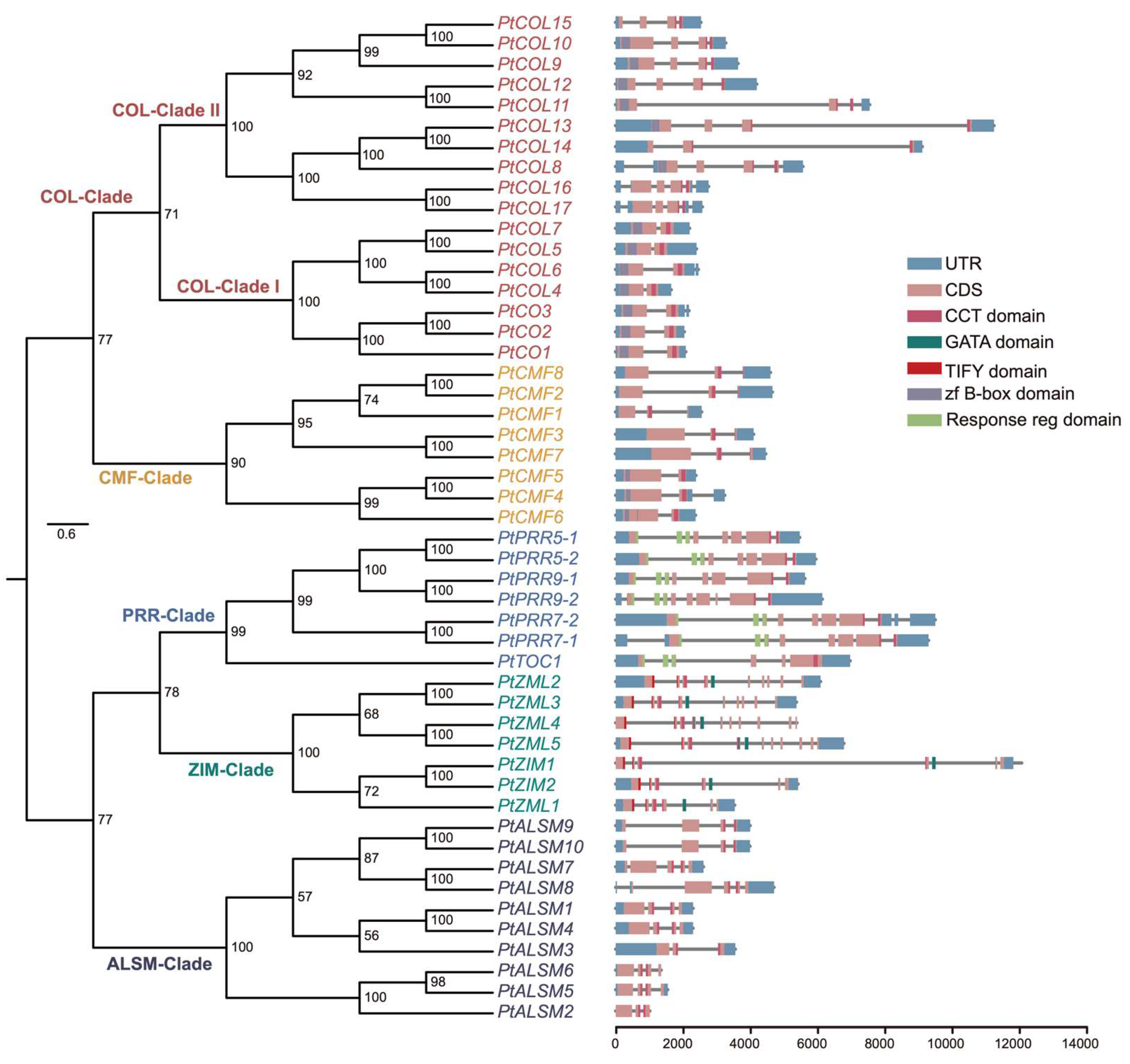 - Li, J.; Gao, K.; Yang, X.; Khan, W.U.; Guo, B.; Guo, T.; An, X. Identification and characterization of the CONSTANS-like gene family and its expression profiling under light treatment in Populus. Int. J. Biol. Macromol. 2020, 161, 999–1010. [Google Scholar] [CrossRef]