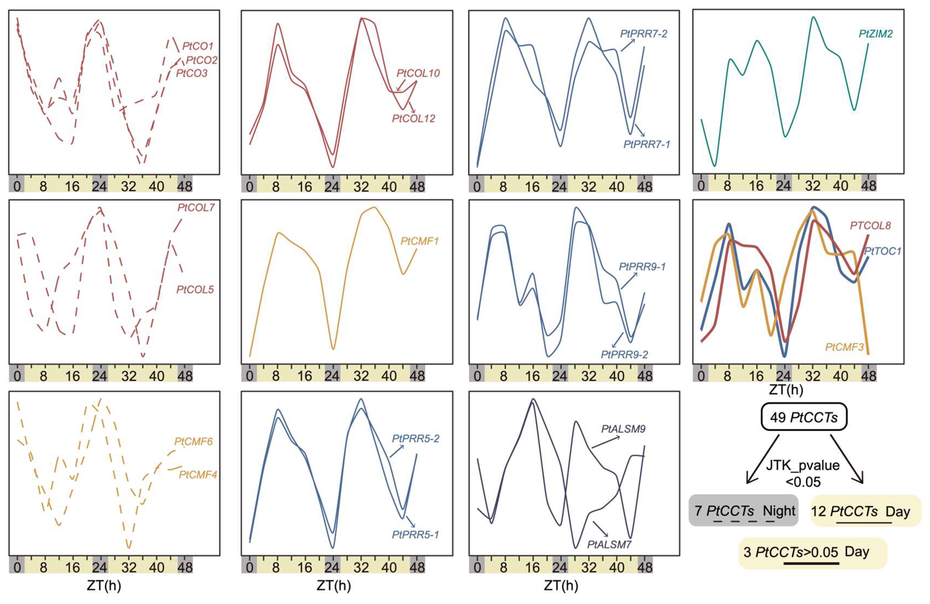 3.5. The Diurnal Rhythmic Expression Analysis of PtCCTs