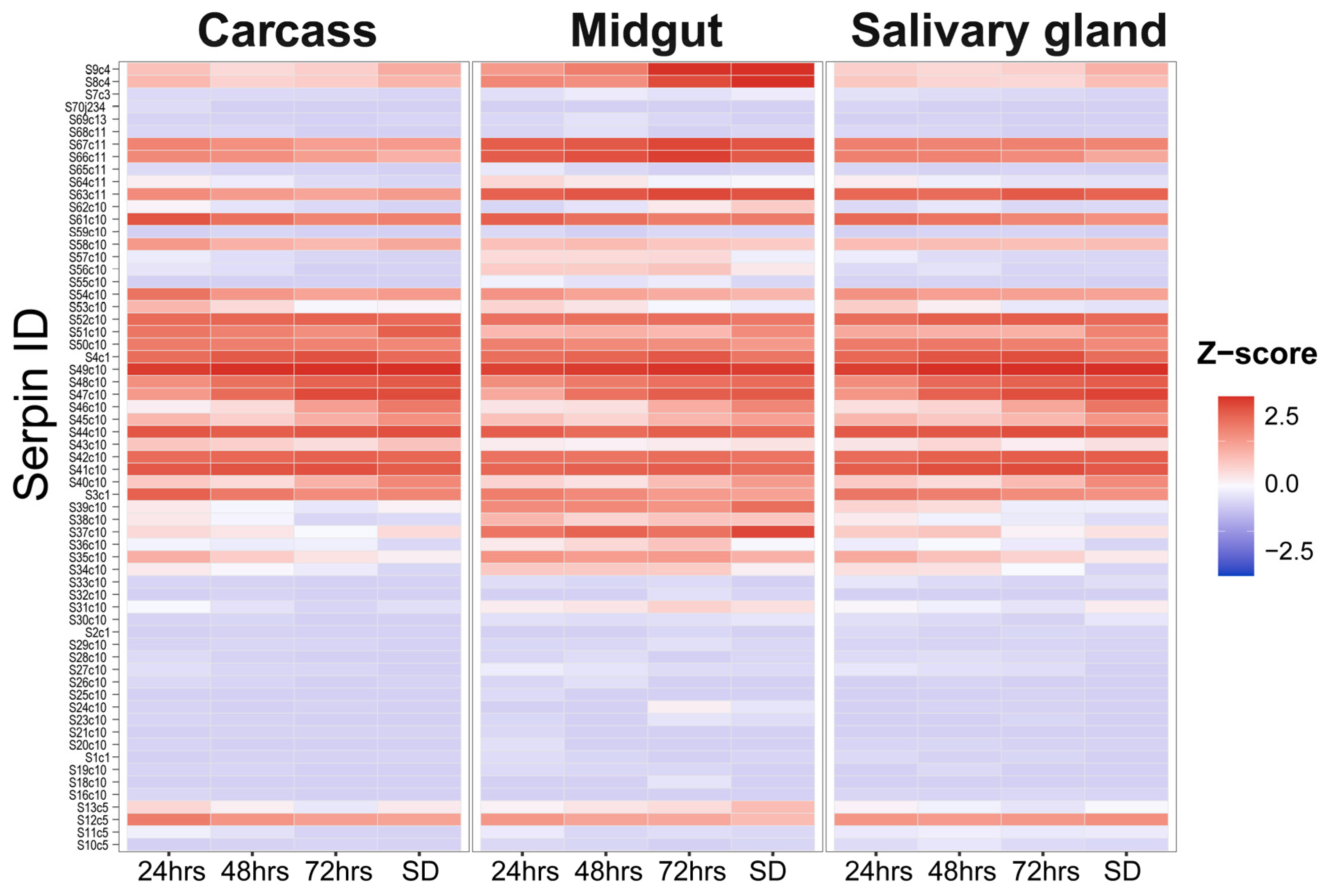 2.5. Expression Analysis of I. scapularis Serpins