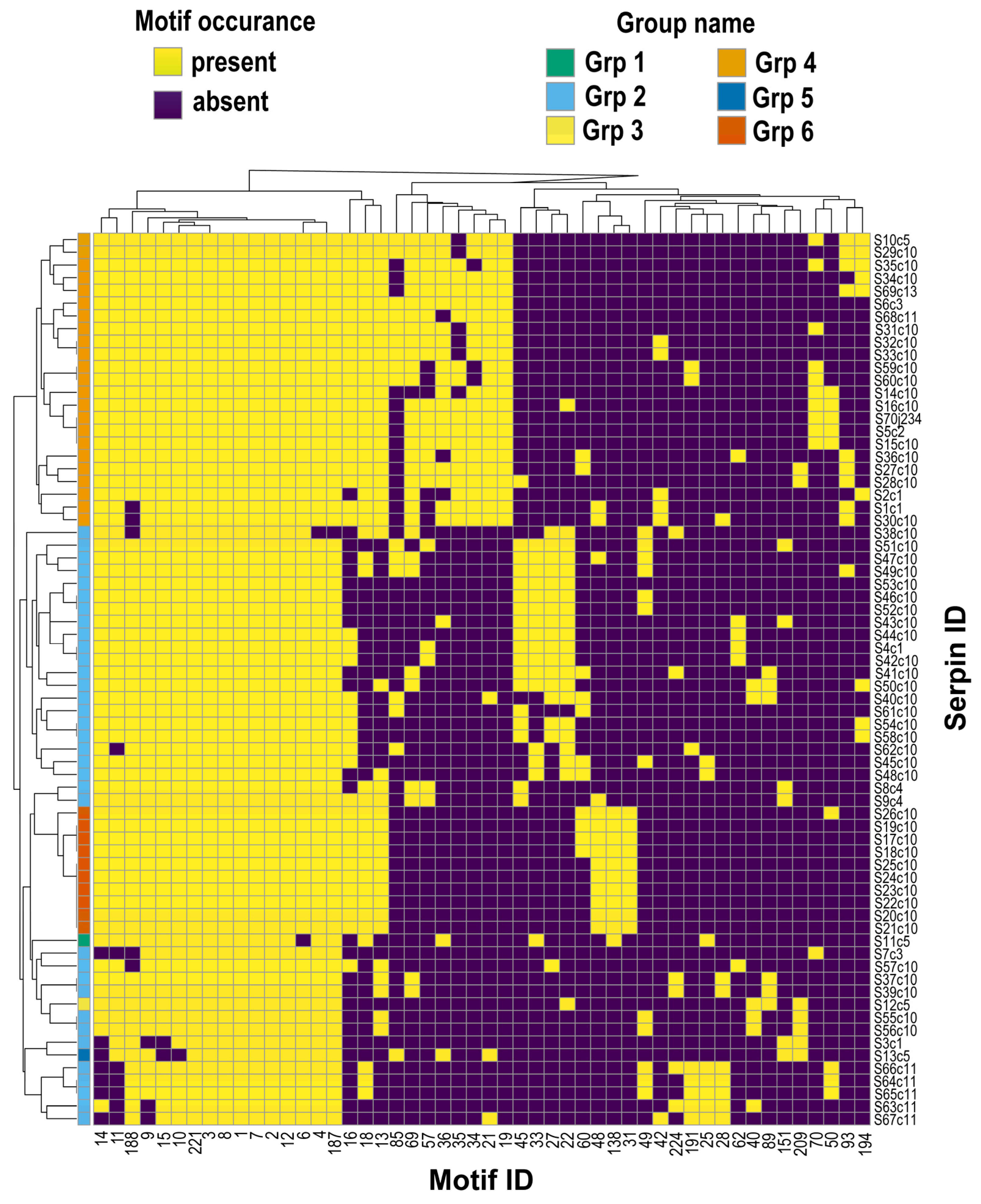 | S48c10 | Hydrophobic P1 = L | Neutrophil/mast-cell proteases (cathepsin G, chymase); chymotrypsin | Kallikrein; chymotrypsin; human chymase; cathepsin G [59] |