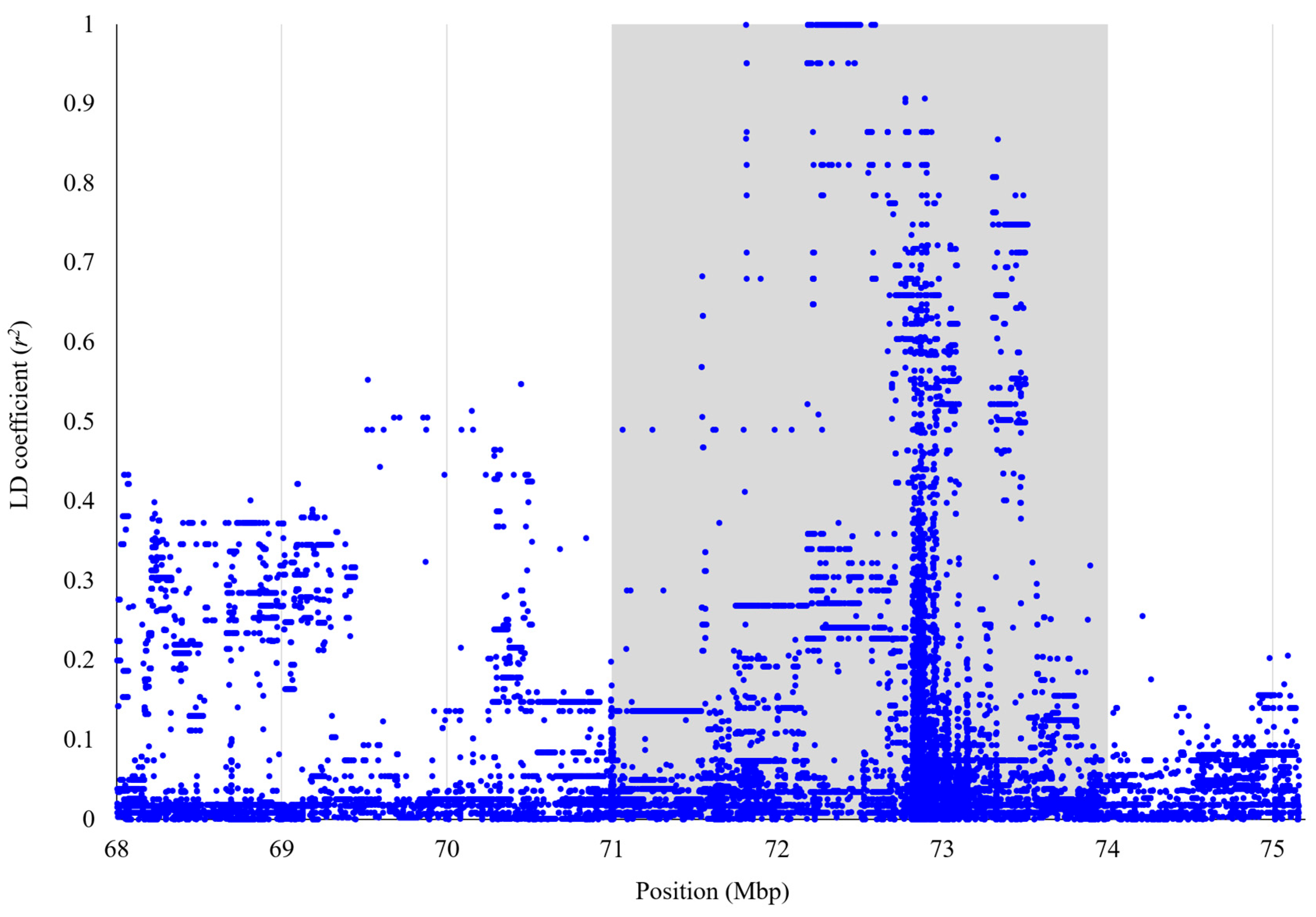 2.4. Linkage Disequilibrium Analysis