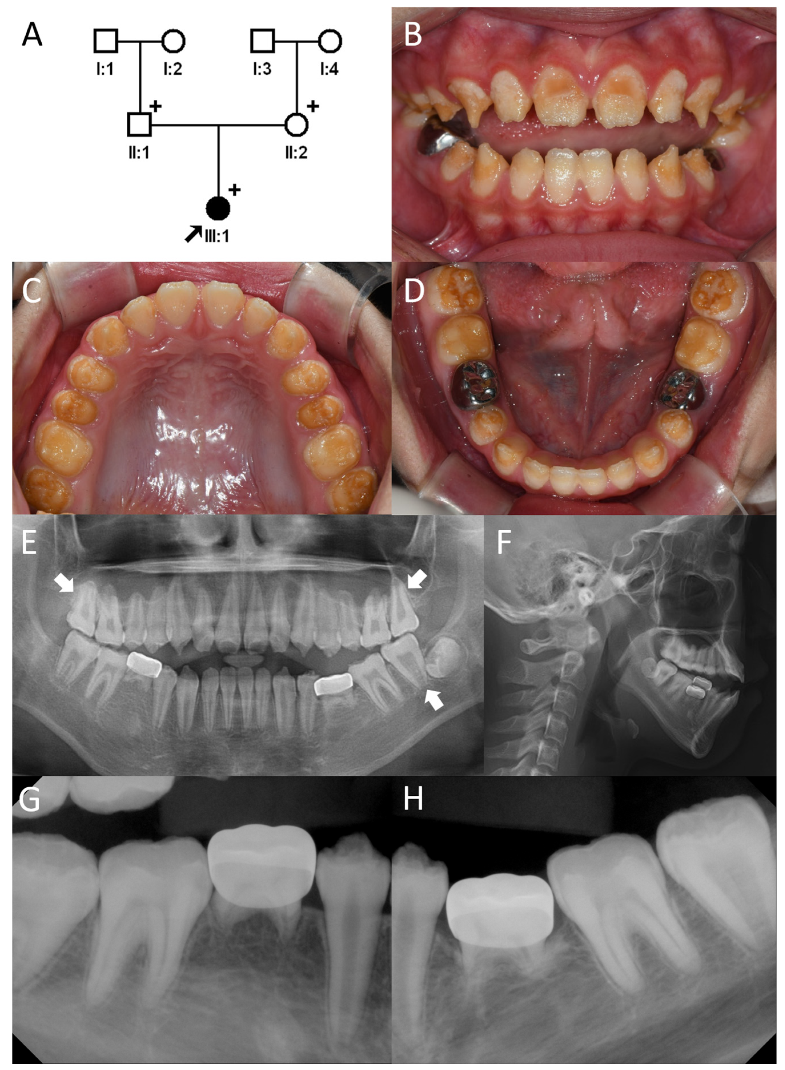 - Wang, S.K.; Choi, M.; Richardson, A.S.; Reid, B.M.; Lin, B.P.; Wang, S.J.; Kim, J.W.; Simmer, J.P.; Hu, J.C. ITGB6 loss-of-function mutations cause autosomal recessive amelogenesis imperfecta. Hum. Mol. Genet. 2014, 23, 2157–2163. [Google Scholar] [CrossRef]