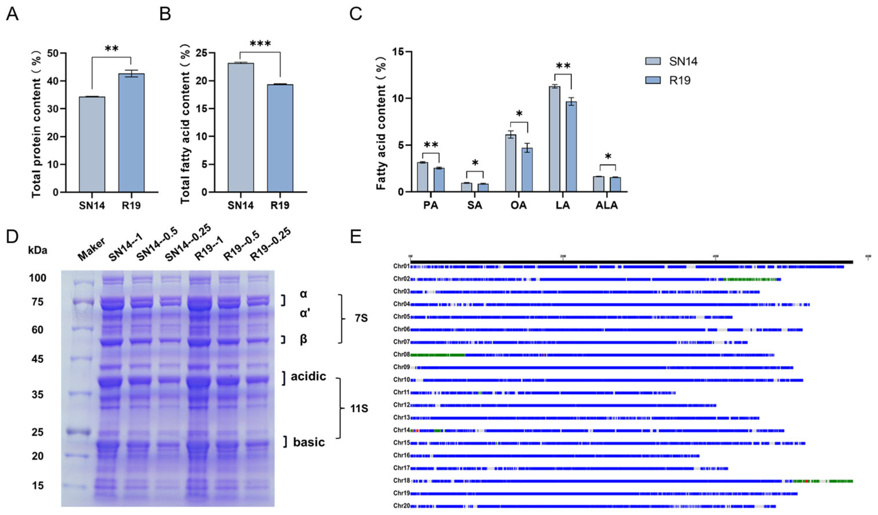 2.2. Measurement of Seed FA Profile and SSP Content