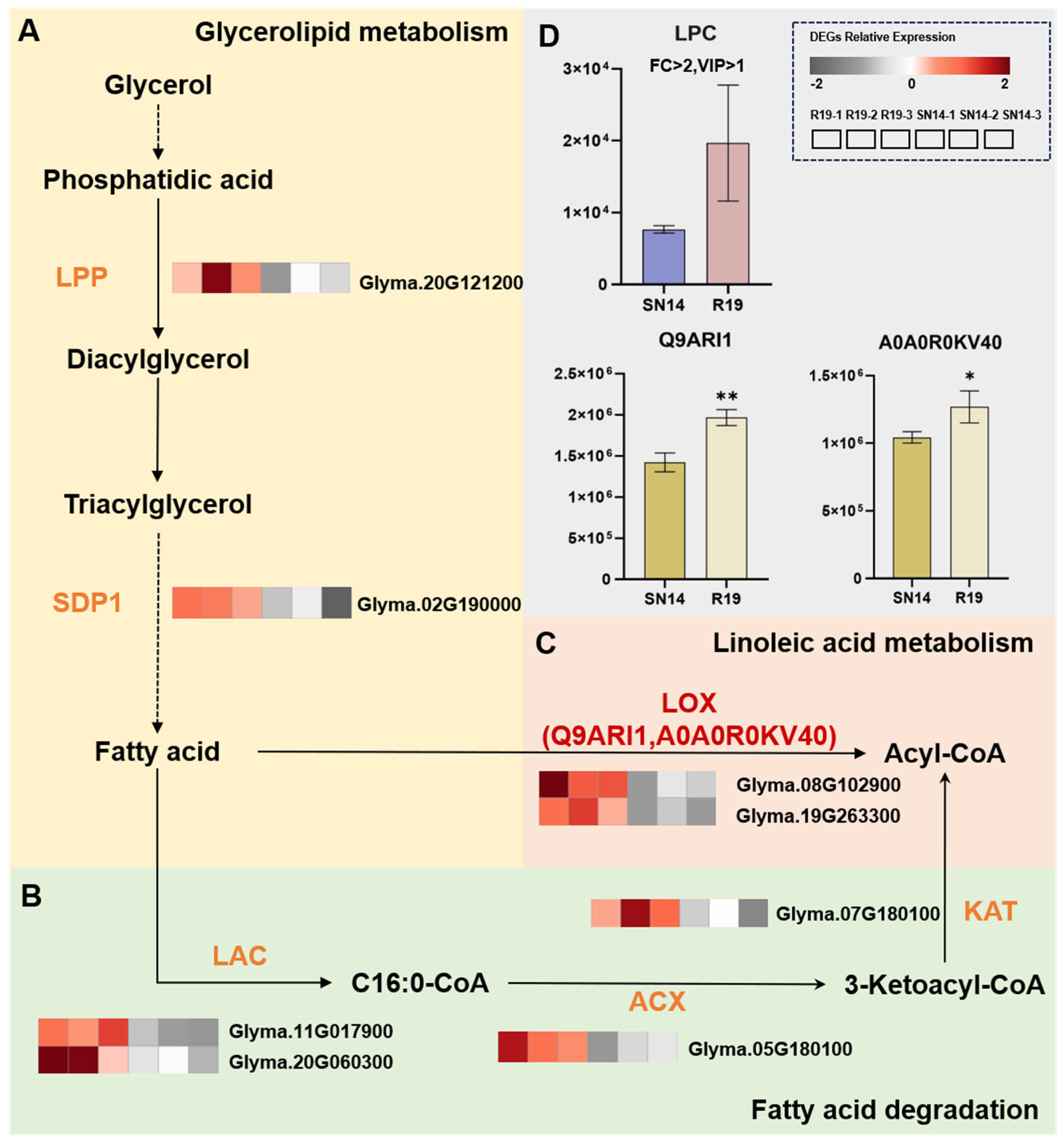 - Fan, J.; Yan, C.; Roston, R.; Shanklin, J.; Xu, C. Arabidopsis lipins, PDAT1 acyltransferase, and SDP1 triacylglycerol lipase synergistically direct fatty acids toward β-oxidation, thereby maintaining membrane lipid homeostasis. Plant Cell 2014, 26, 4119–4134. [Google Scholar] [CrossRef] [PubMed]