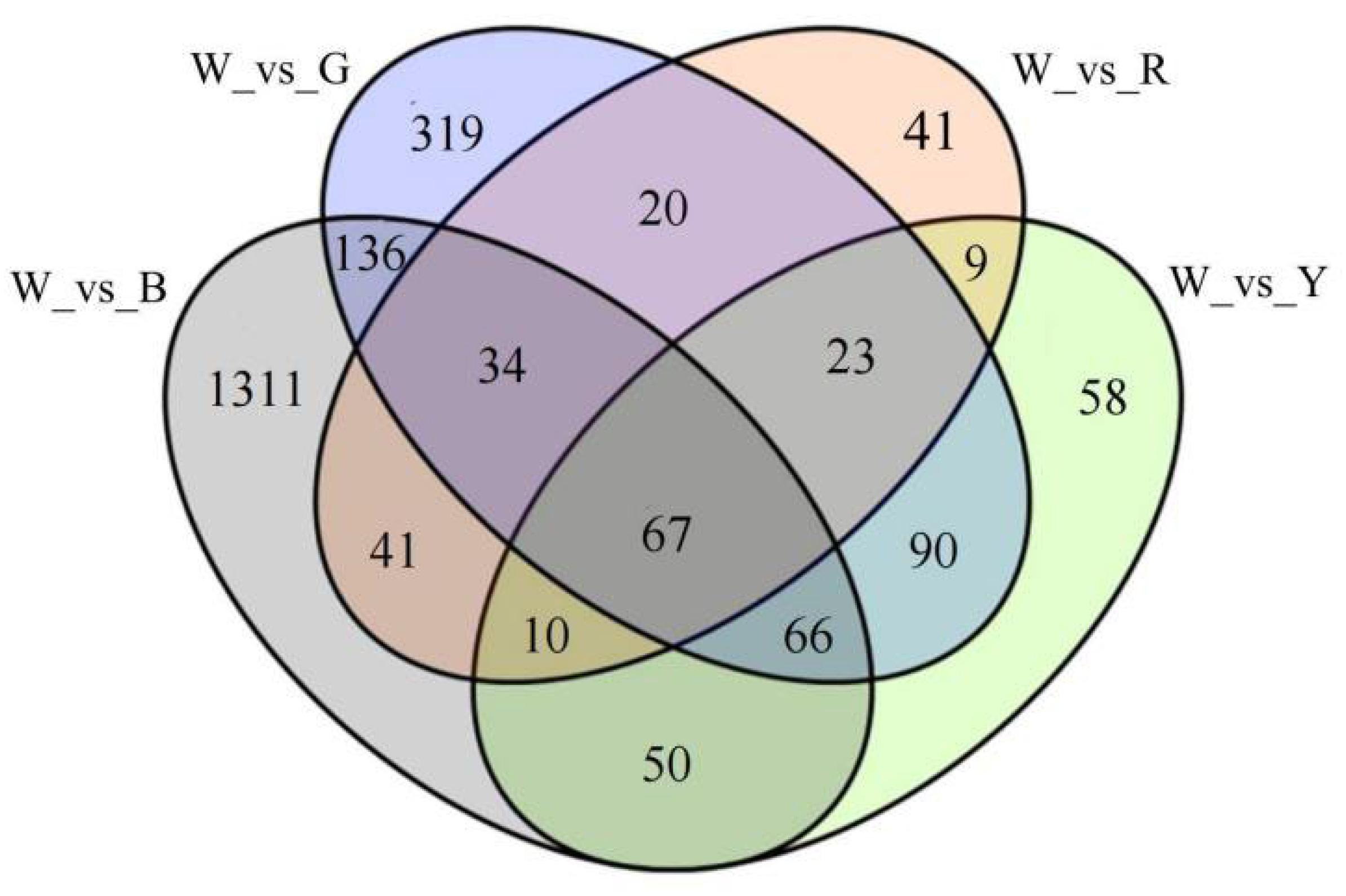 APA StyleQiu, M., Shi, Y., Shen, T., Cai, K., Li, L., Qiu, X., Zheng, T., & Chen, Y. (2026). Multi-Omics Reveals Light-Quality-Dependent Phytohormone and Transcription Factor Networks Regulating Flavonoid Biosynthesis in Ludisia discolor. Genes, 17(4), 445. https://doi.org/10.3390/genes17040445