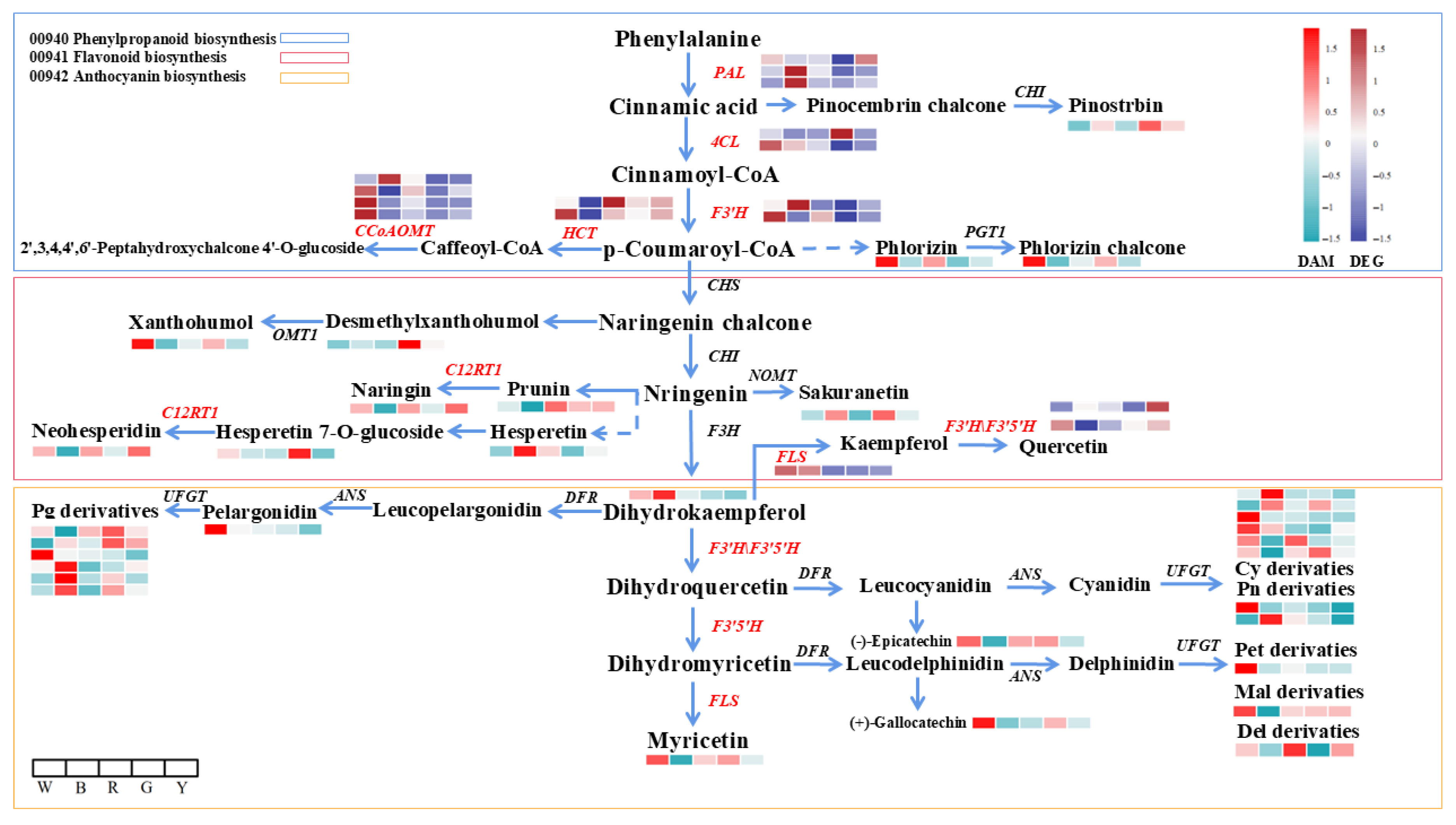 3.2.3. Analysis of the Genes Involved in the Biosynthesis of the Flavonoid Metabolites