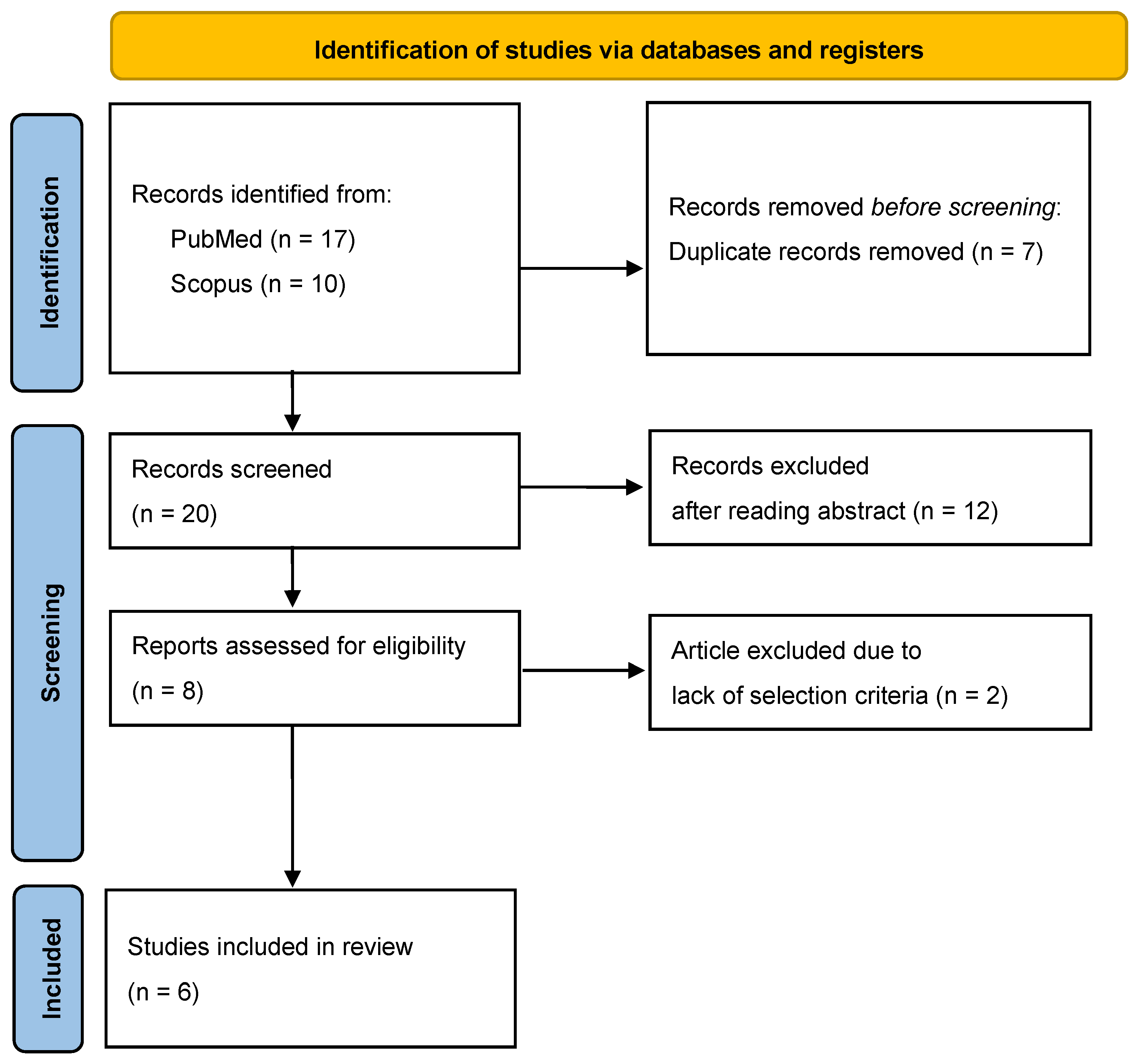 This systematic review was conducted and reported in accordance with the PRISMA 2020 statement. The review protocol was not registered in PROSPERO or in any other database. A PRISMA flow diagram summarizing the study selection process is included in the manuscript (