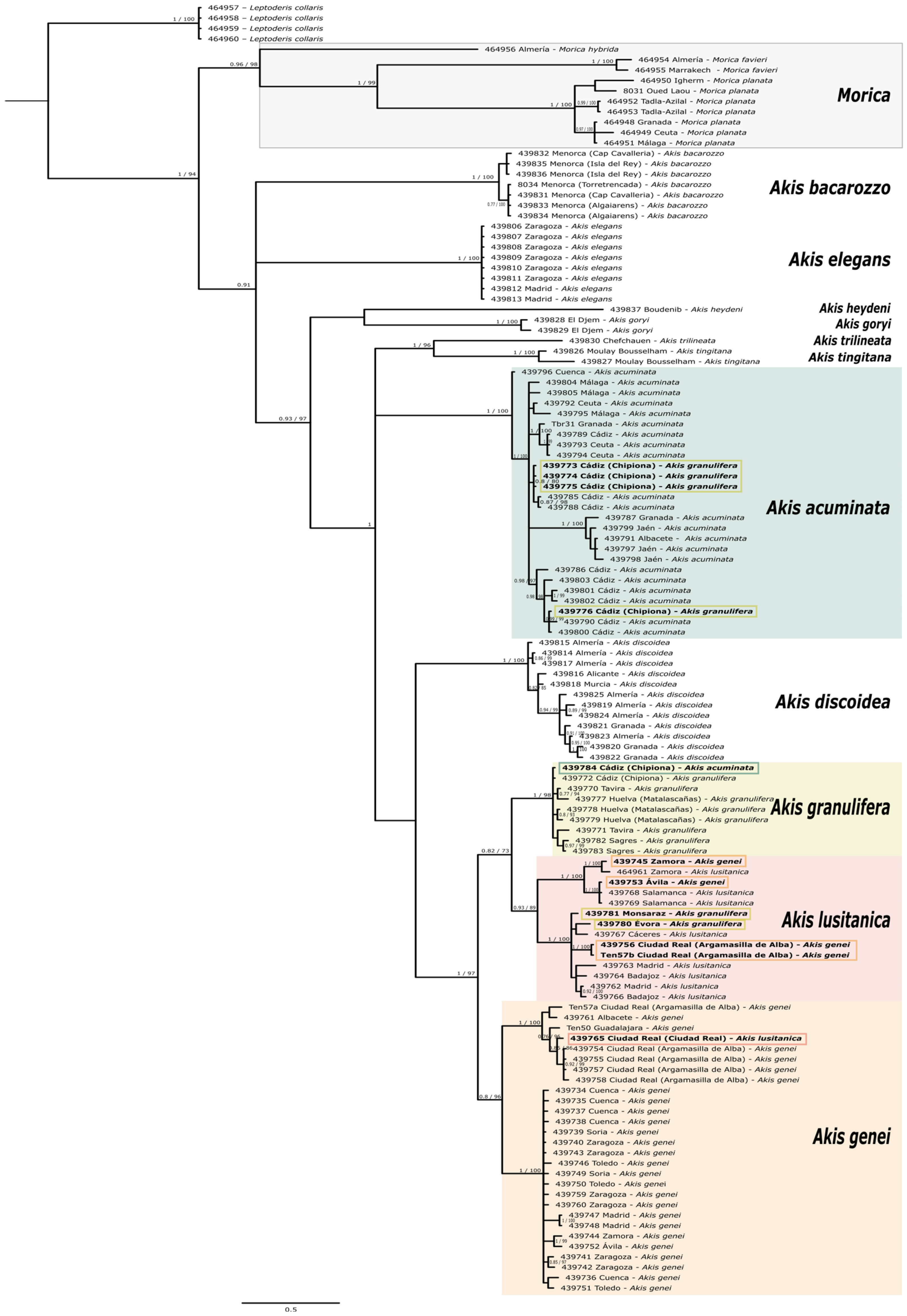 | MNCN_Ent 439787 | Akis acuminata | Spain: Granada: Darro | PZ044930 | PZ049408 |