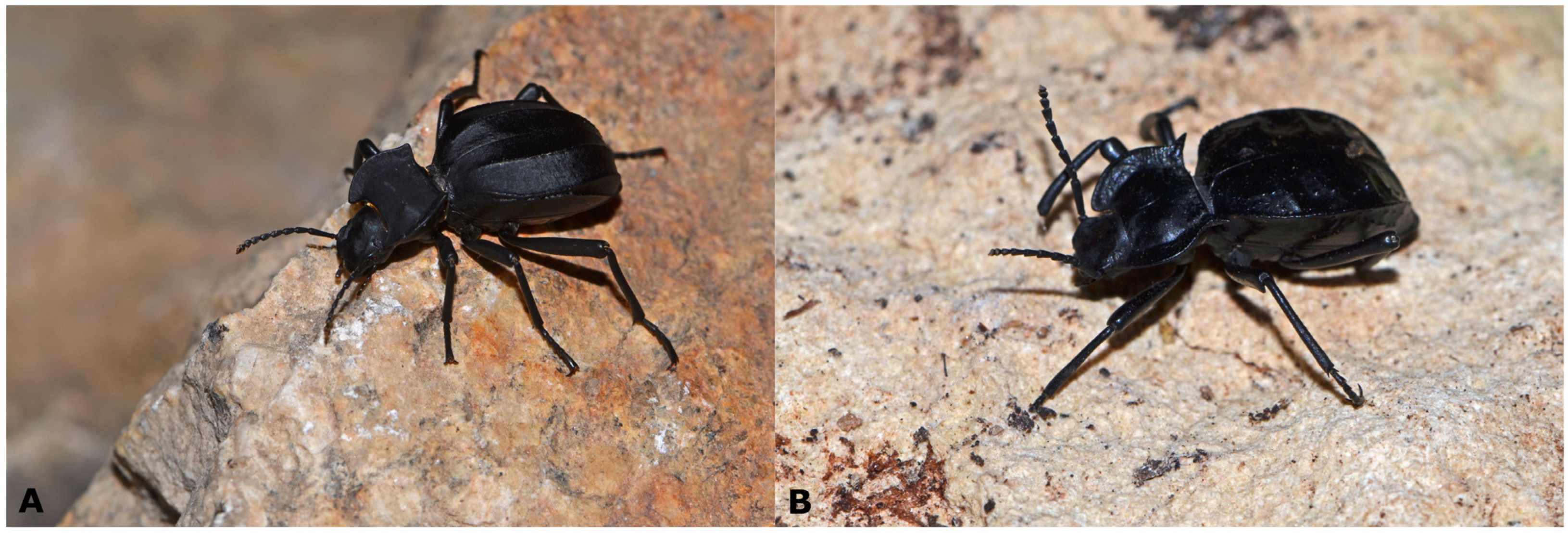 - Mas-Peinado, P.; Ruiz, J.L.; Merkl, O.; Buckley, D.; García-París, M. Taxonomy of the North Moroccan and Iberian species of the subgenus Amblypteraca (Coleoptera: Tenebrionidae: Pimeliinae: Pimelia). Zootaxa 2021, 4963, 457–482. [Google Scholar] [CrossRef]