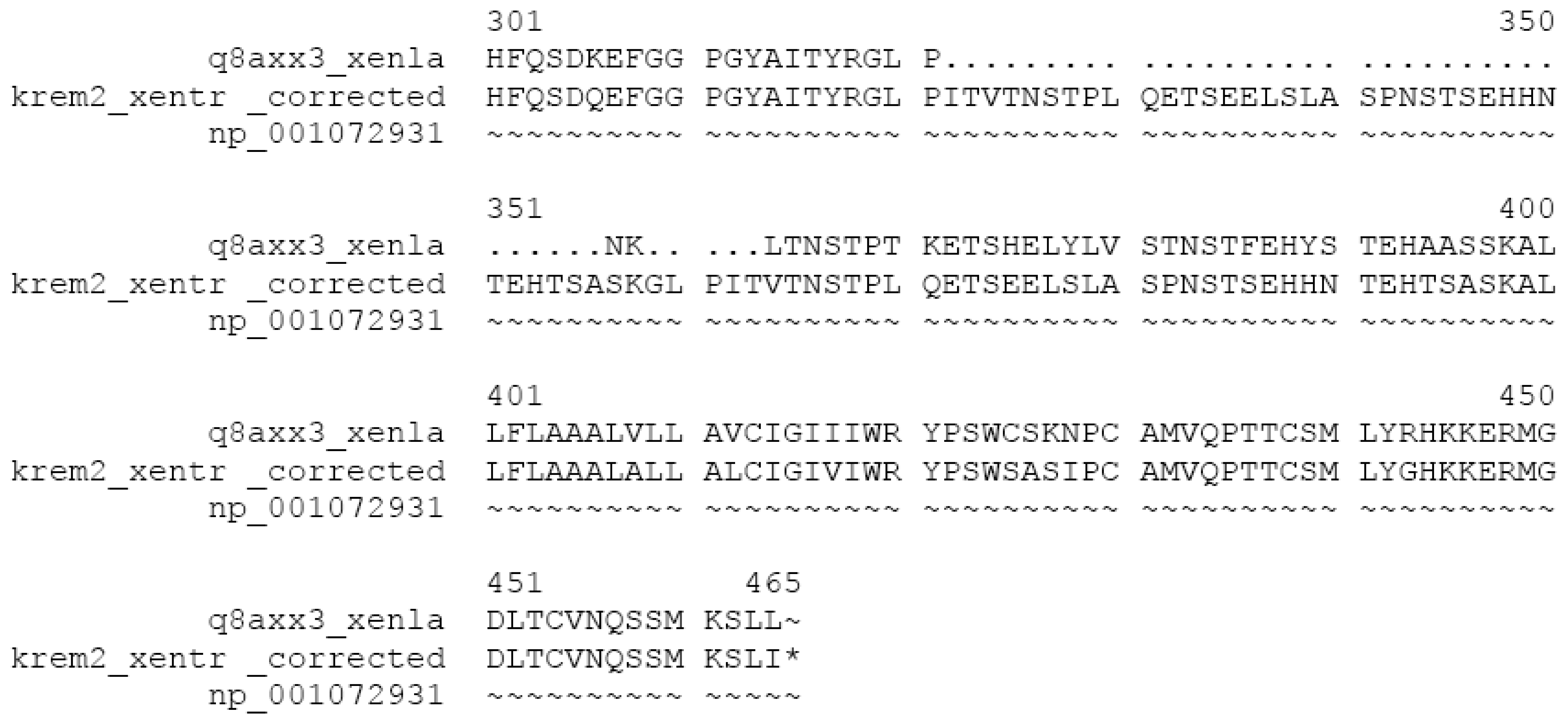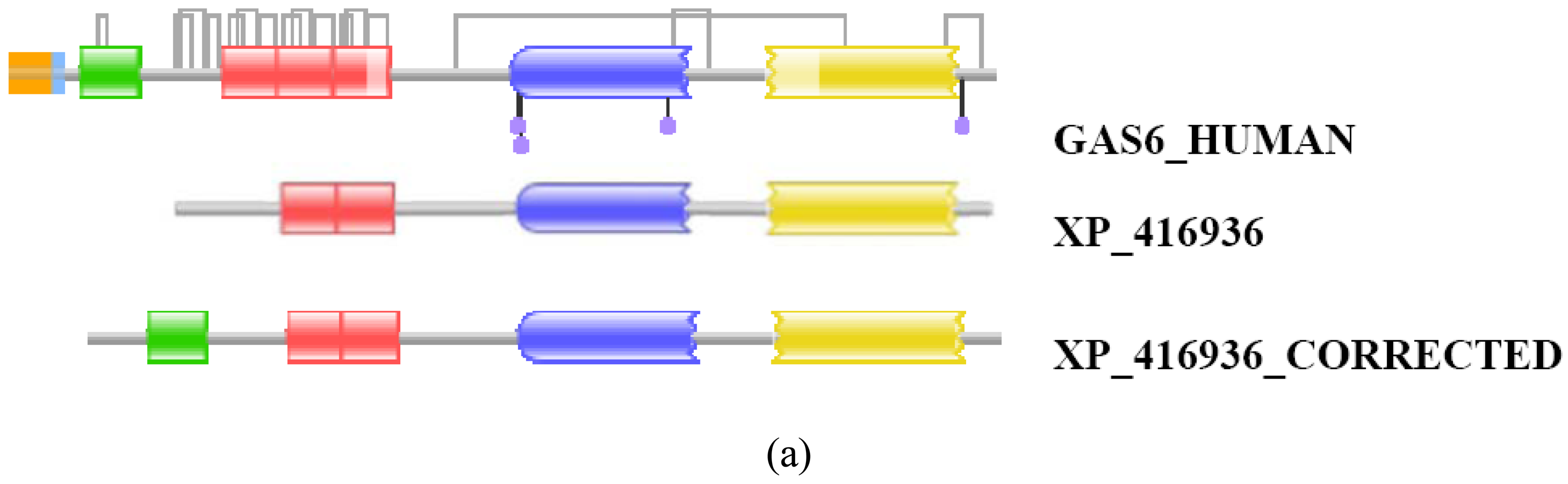 - Nagy, A.; Hegyi, H.; Farkas, K.; Tordai, H.; Kozma, E.; Bányai, L.; Patthy, L. Identification and correction of abnormal, incomplete and mispredicted proteins in public databases. BMC Bioinf. 2008, 9, 353. [Google Scholar]
