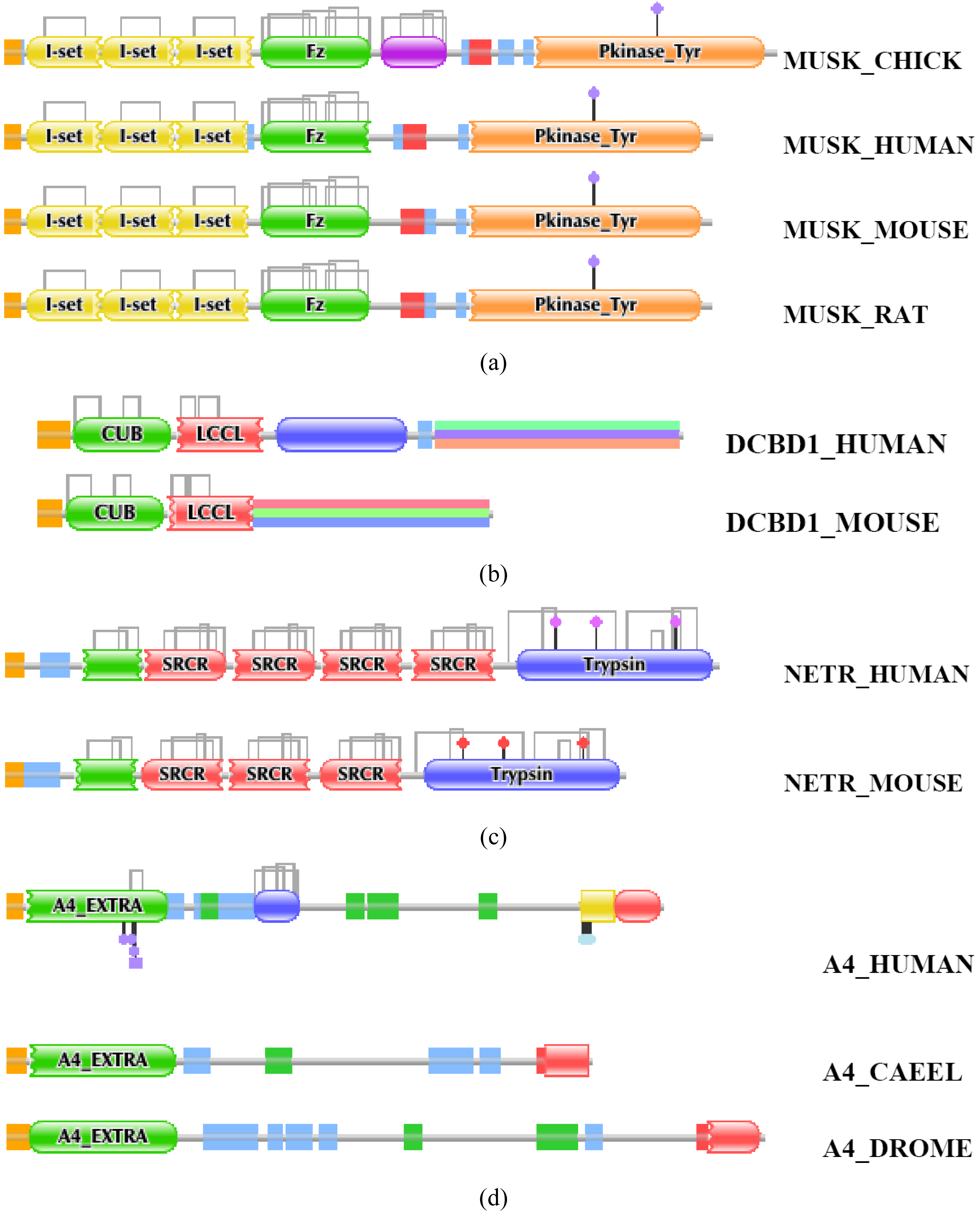 Our analyses revealed that some DA differences reflect alternative splicing, i.e., the Swiss-Prot database presents different isoforms of the orthologs of different species, although their isoform pattern is similar. A typical example is agrin, where different splice forms (with different DAs) are given for different vertebrate species (AGRIN_HUMAN vs. AGRIN_MOUSE or AGRIN_RAT, Figure S1) although it is known that these differences are not species specific [45].