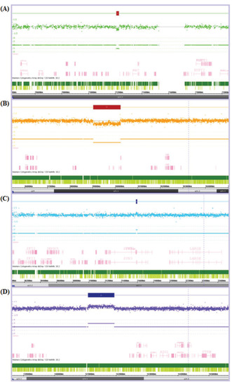 - Pinto, D.; Darvishi, K.; Shi, X.; Rajan, D.; Rigler, D.; Fitzgerald, T.; Lionel, A.C.; Thiruvahindrapuram, B.; Macdonald, J.R.; Mills, R.; et al. Comprehensive assessment of array-based platforms and calling algorithms for detection of copy number variants. Nat. Biotechnol. 2011, 29, 512–520. [Google Scholar] [CrossRef]
