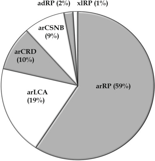 - Hartong, D.T.; Berson, E.L.; Dryja, T.P. Retinitis pigmentosa. Lancet 2006, 368, 1795–1809. [Google Scholar] [CrossRef]