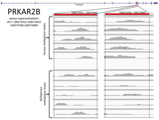 | PRKAR2B | Chr7 | 106573431-106573642 |