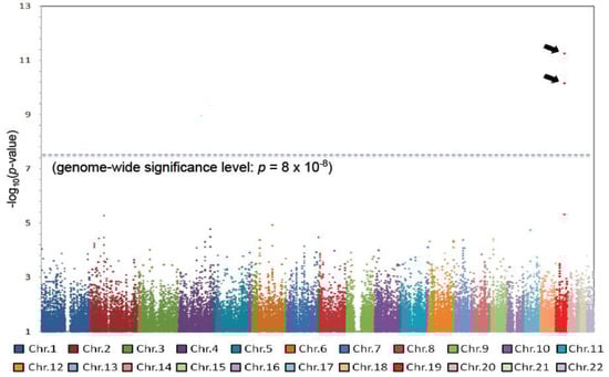Meta-analysis of the largest-scale GWAS in Japan on rheumatoid arthritis (RA) led to the discovery of susceptibility genes that are common to various different autoimmune disorders []. The GWAS was performed on approximately 4000 patients and 17,000 controls, and a replication study was carried out with 5000 patients and 22,000 controls. In addition to previously reported susceptibility genes, nine new susceptibility genes were discovered. Among these are several susceptibility genes that have been also reported for systemic lupus erythematosus (SLE) and Graves’ disease.