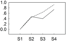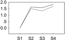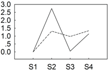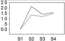 qRT-PCR validations of expression levels of target genes from digital gene expression analysis. Expression levels by qRT-PCR of selected target genes of P. lactiflora cultivars “Dafugui” and “Zifengyu” were validated from the levels of digital gene expression data. The corresponding genes are specified above each map. The Y axis represents the normalized log2 value of gene expression levels. The X axis represents the comparisons of different stages. “S2/S1” indicates a comparison of gene expression levels between S1 and S2. “S3/S1” and “S4/S1” indicate analogous comparisons. S1: late May; S2: mid June; S3: early July; S4: late July.