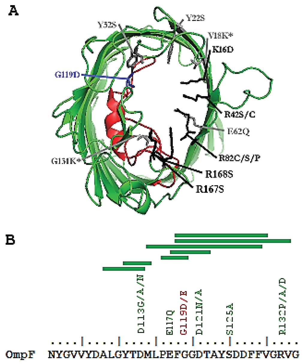 2.3. Mutations Affecting Porins Selected under Nutrient Limitation Stress