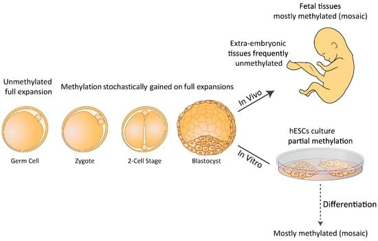 - Iida, T.; Nakahori, Y.; Tsutsumi, O.; Taketani, Y.; Nakagome, Y. The CPG island of the FMR-1 gene is methylated differently among embryonic tissues: Implication for prenatal diagnosis. Hum. Reprod. 1994, 9, 1471–1473. [Google Scholar] [PubMed]