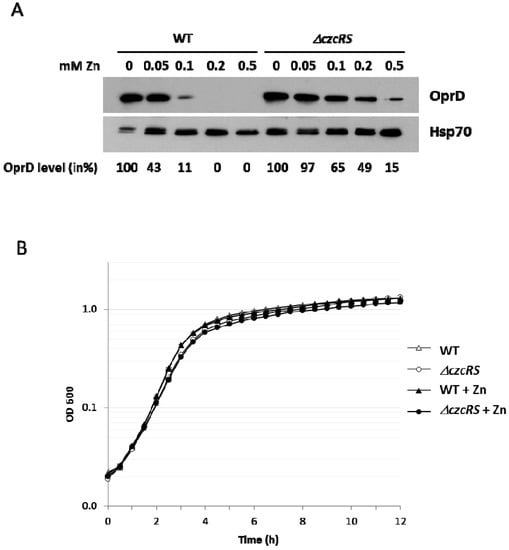 3.1. A CzcR-Independent Mechanism Represses the Production of the OprD Porin in Presence of Zn