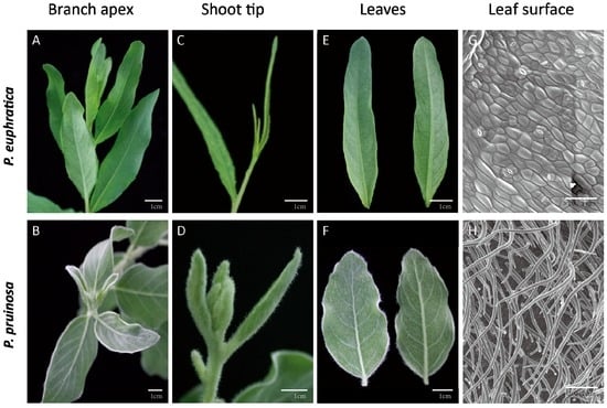 3.1. Trichome Differences in Two Sister Desert Poplars