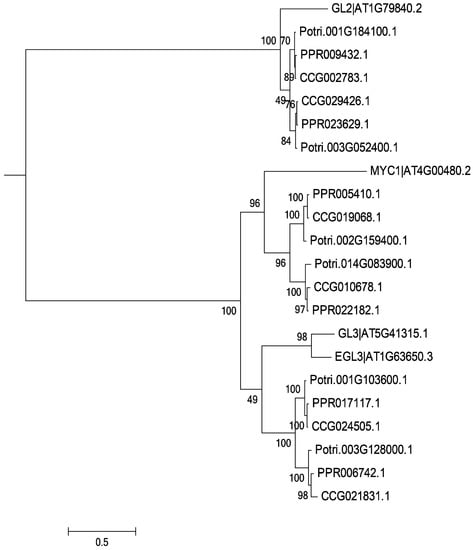 - Plett, J.M.; Wilkins, O.; Campbell, M.M.; Ralph, S.G.; Regan, S. Endogenous overexpression of Populus MYB186 increases trichome density, improves insect pest resistance, and impacts plant growth. Plant J. 2010, 64, 419–432. [Google Scholar] [CrossRef] [PubMed]
