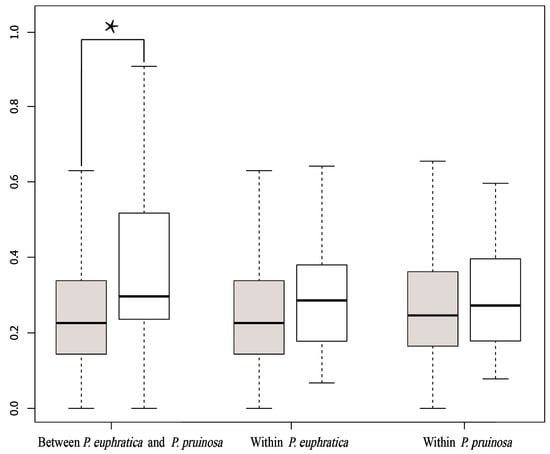 - Wang, J.; Kallman, T.; Liu, J.; Guo, Q.; Wu, Y.; Lin, K.; Lascoux, M. Speciation of two desert poplar species triggered by Pleistocene climatic oscillations. Heredity 2014, 112, 156–164. [Google Scholar] [CrossRef] [PubMed]