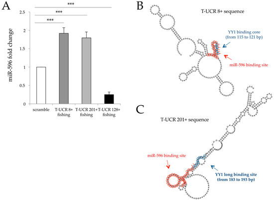 3.2. Identification of T-UCR 201+/miR-596 Interaction Using a Fishing Approach