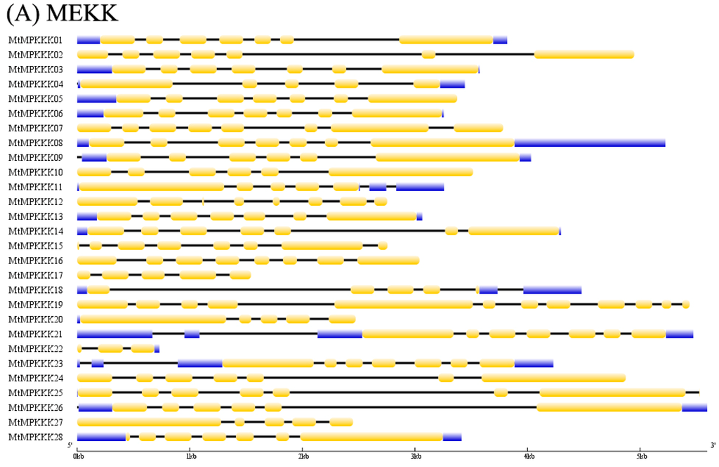 | MtMPKKK28 | Medtr0090s0020 | scaffold0090:7455-10869 | 727 | 6 | MEKK |