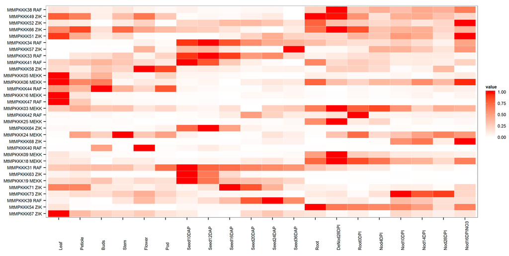 | MtMPKKK31 | Medtr3g047890 | chr3:15980547-15985045 | 506 | 7 | RAF |