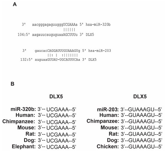 3.1. miR-203 and miR-320b Targets Dlx5 as Shown by in Silico Analyses
