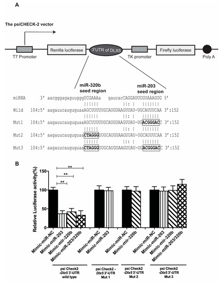 3.5. miR-203 and miR-320b Directly Target Dlx5