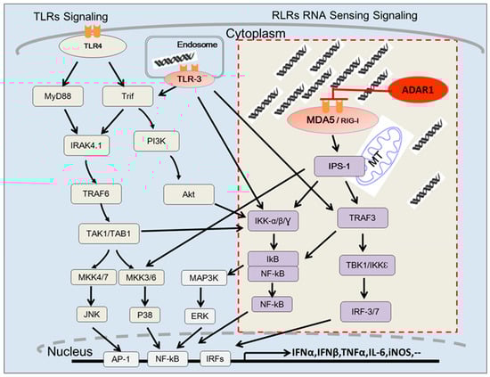 5. Cytosolic RNA Receptors Responding to Cellular “Self” RNA of ADAR1 Substrate