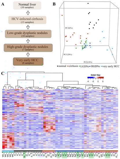 - Marquardt, J.U.; Seo, D.; Andersen, J.B.; Gillen, M.C.; Kim, M.S.; Conner, E.A.; Galle, P.R.; Factor, V.M.; Park, Y.N.; Thorgeirsson, S.S. Sequential transcriptome analysis of human liver cancer indicates late stage acquisition of malignant traits. J. Hepatol. 2014, 60, 346–353. [Google Scholar] [CrossRef] [PubMed]