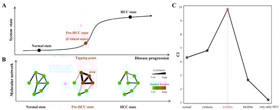 Lu, L.; Jiang, Z.; Dai, Y.; Chen, L. Low-Grade Dysplastic Nodules Revealed as the Tipping Point during Multistep Hepatocarcinogenesis by Dynamic Network Biomarkers. Genes 2017, 8, 268. https://doi.org/10.3390/genes8100268