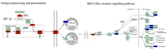 | RIG-I-like receptor signaling pathway (−) | T cell receptor signaling pathway (−) | |