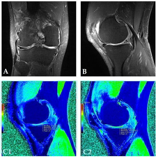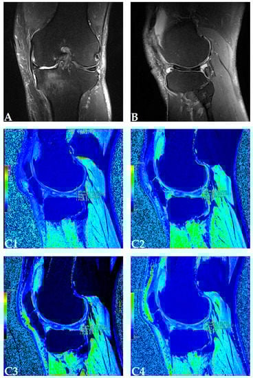 - Young, A.A.; Stanwell, P.; Williams, A.; Rohrsheim, J.A.; Parker, D.A.; Giuffre, B.; Ellis, A.M. Glycosaminoglycan content of knee cartilage following posterior cruciate ligament rupture demonstrated by delayed gadolinium-enhanced magnetic resonance imaging of cartilage (dGEMRIC). A case report. J. Bone Joint Surg. Am. 2005, 87, 2763–2767. [Google Scholar] [CrossRef] [PubMed]